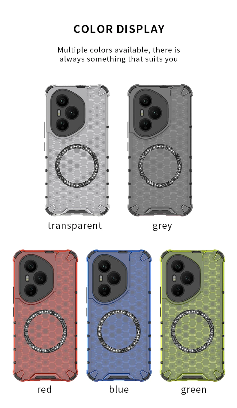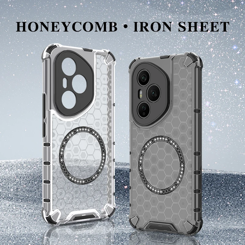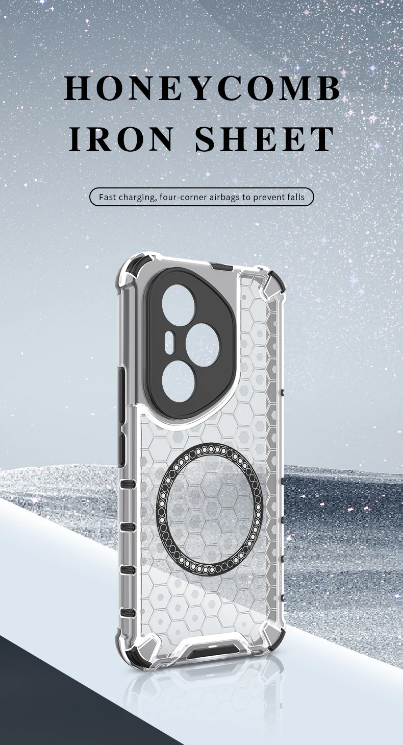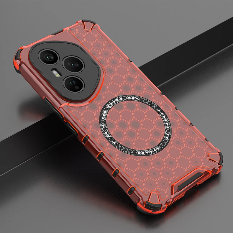 حافظة لهاتف Magsafe مغناطيسية من مادة TPU على شكل قرص العسل لهاتف Honor 400 Pro Lite وسادة هوائية مضادة للسقوط لتبديد الحرارة غطاء ممتص للصدمات ناعم