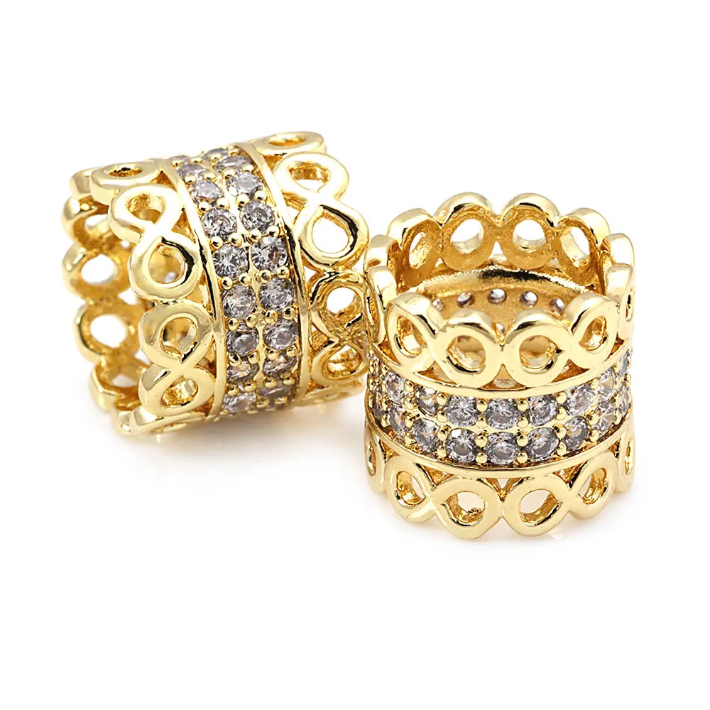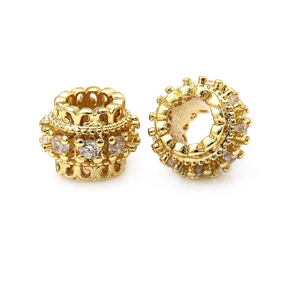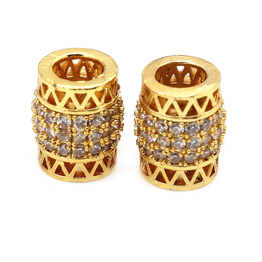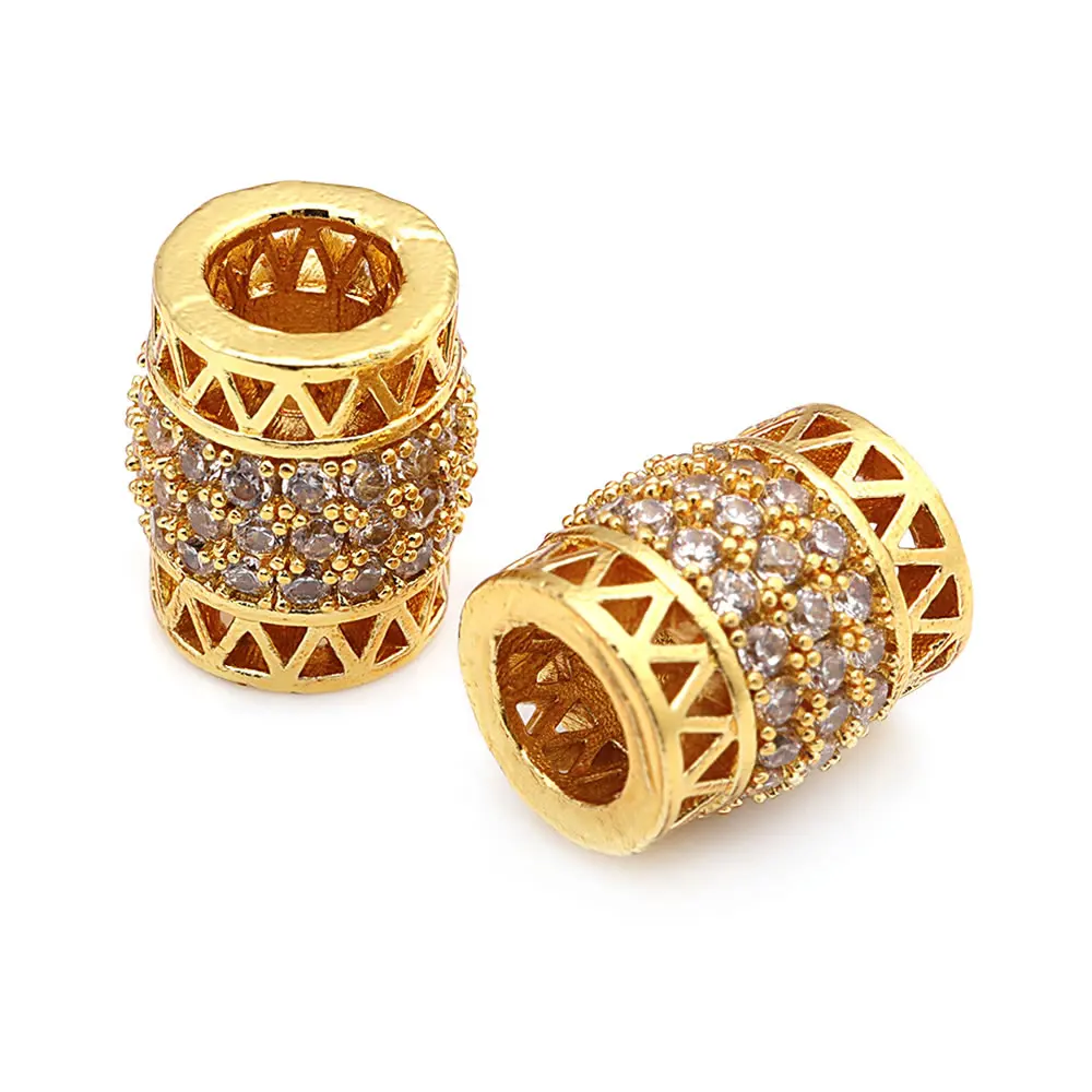 خرزات اسطوانية من النحاس والزركون ، لون ذهبي 18 قيراط ، فتحة كبيرة ، أساور ، إكسسوارات مجوهرات ، جودة عالية ، تصنعها بنفسك ، 4