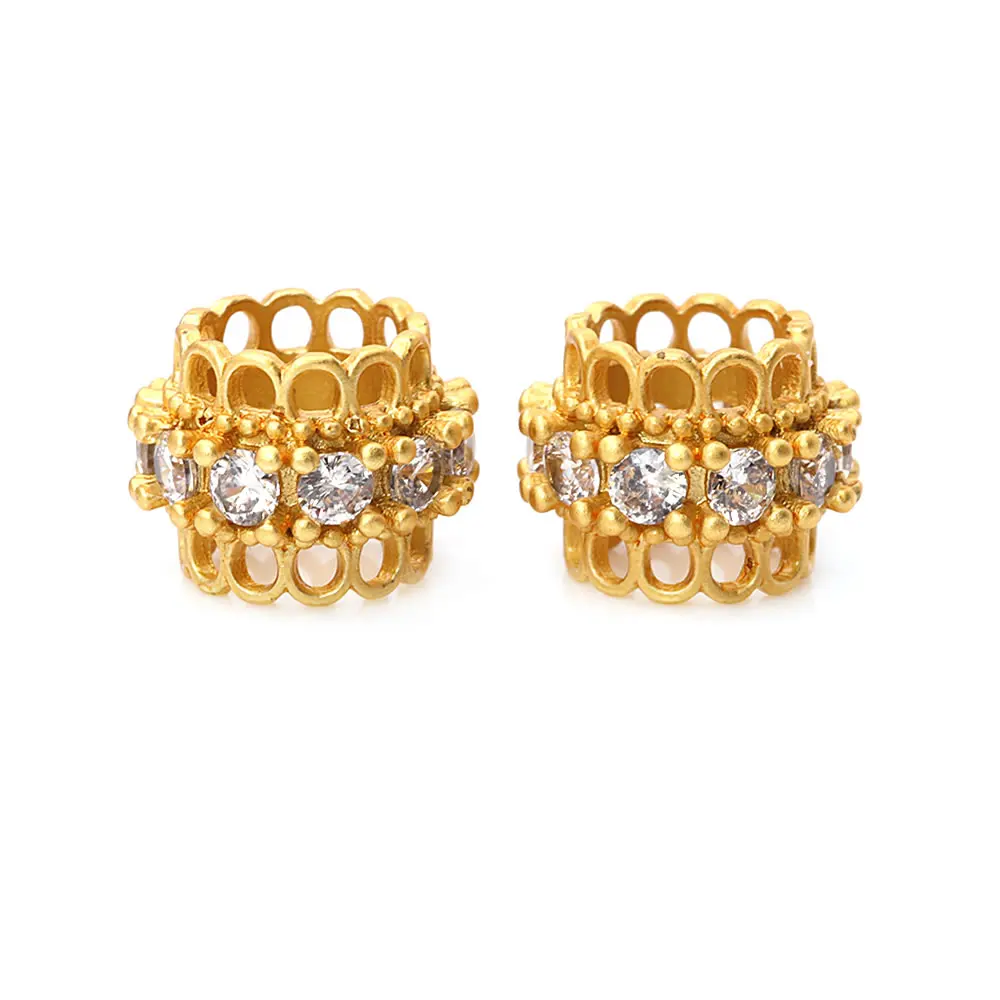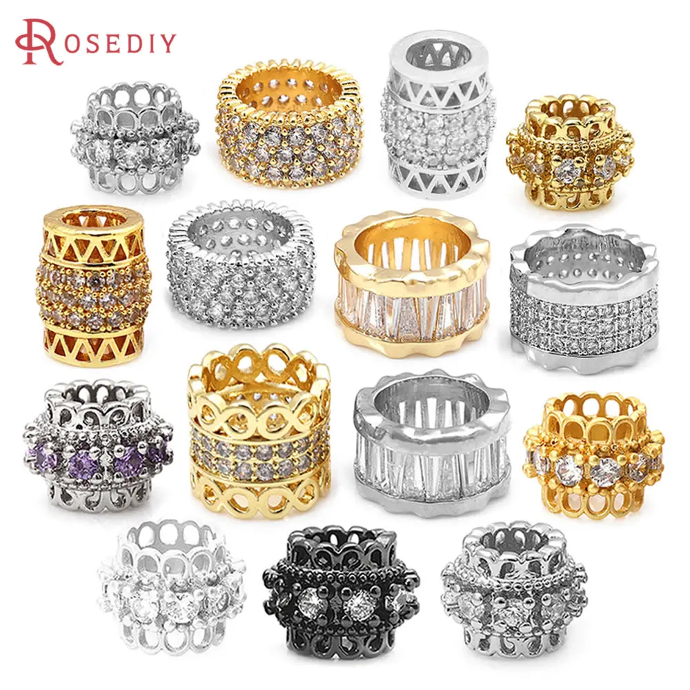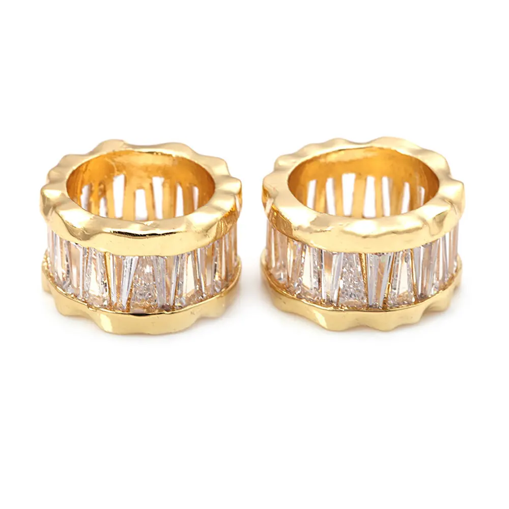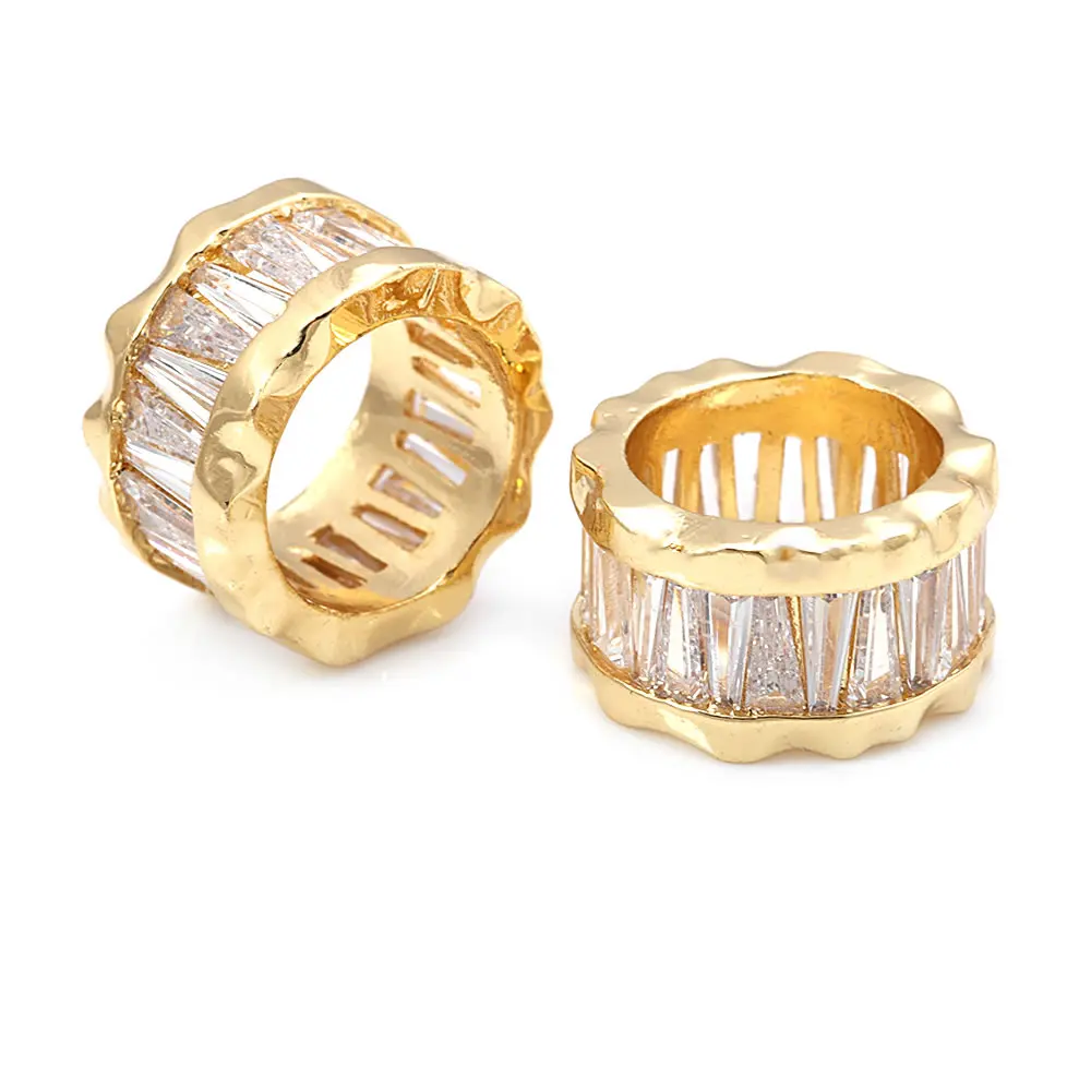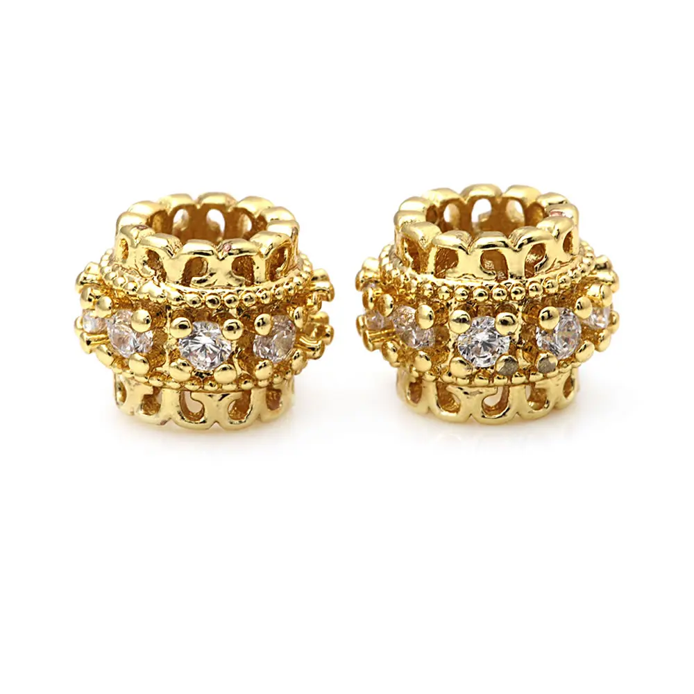 خرزات اسطوانية من النحاس والزركون ، لون ذهبي 18 قيراط ، فتحة كبيرة ، أساور ، إكسسوارات مجوهرات ، جودة عالية ، تصنعها بنفسك ، 4