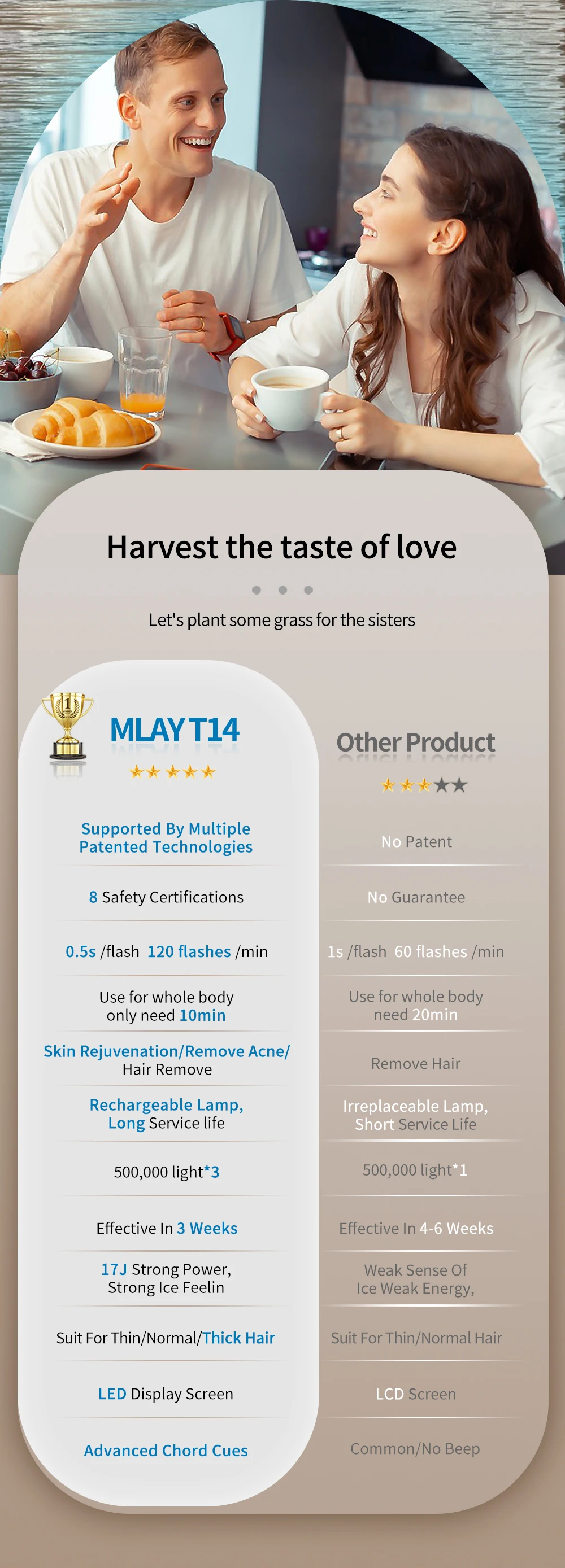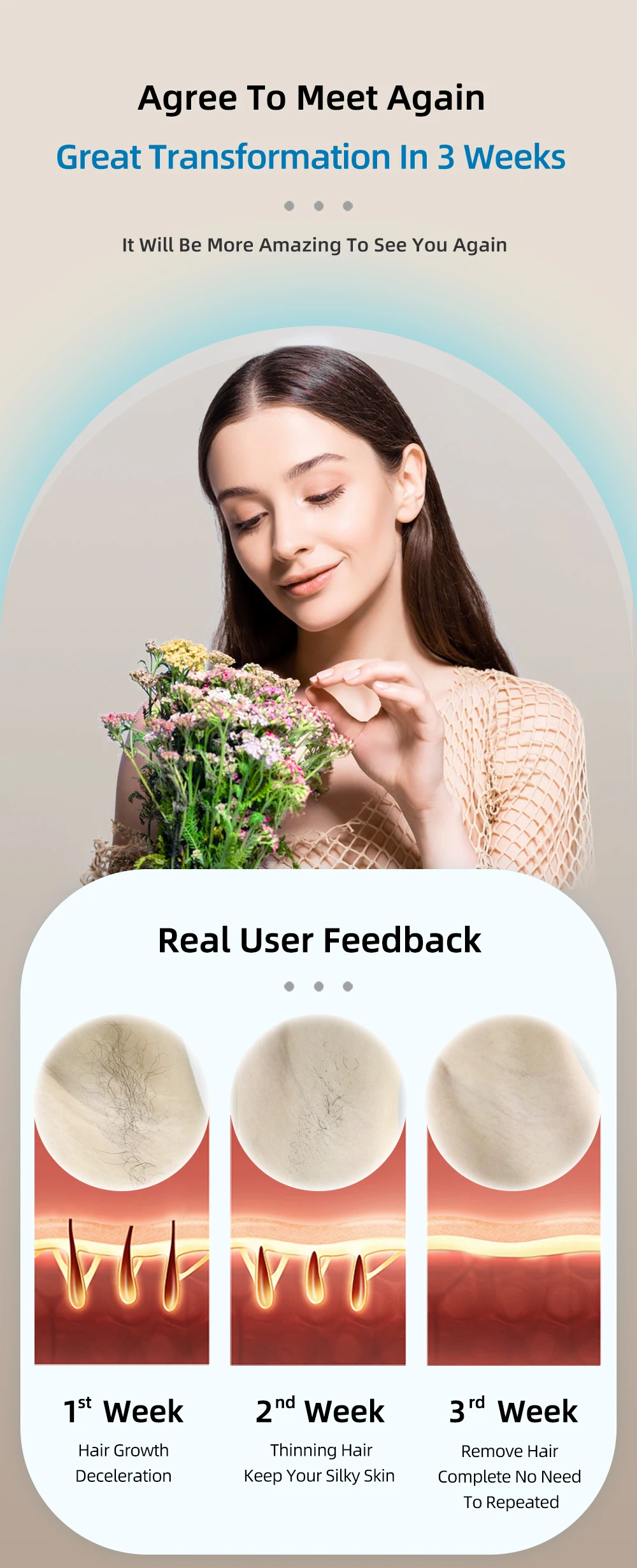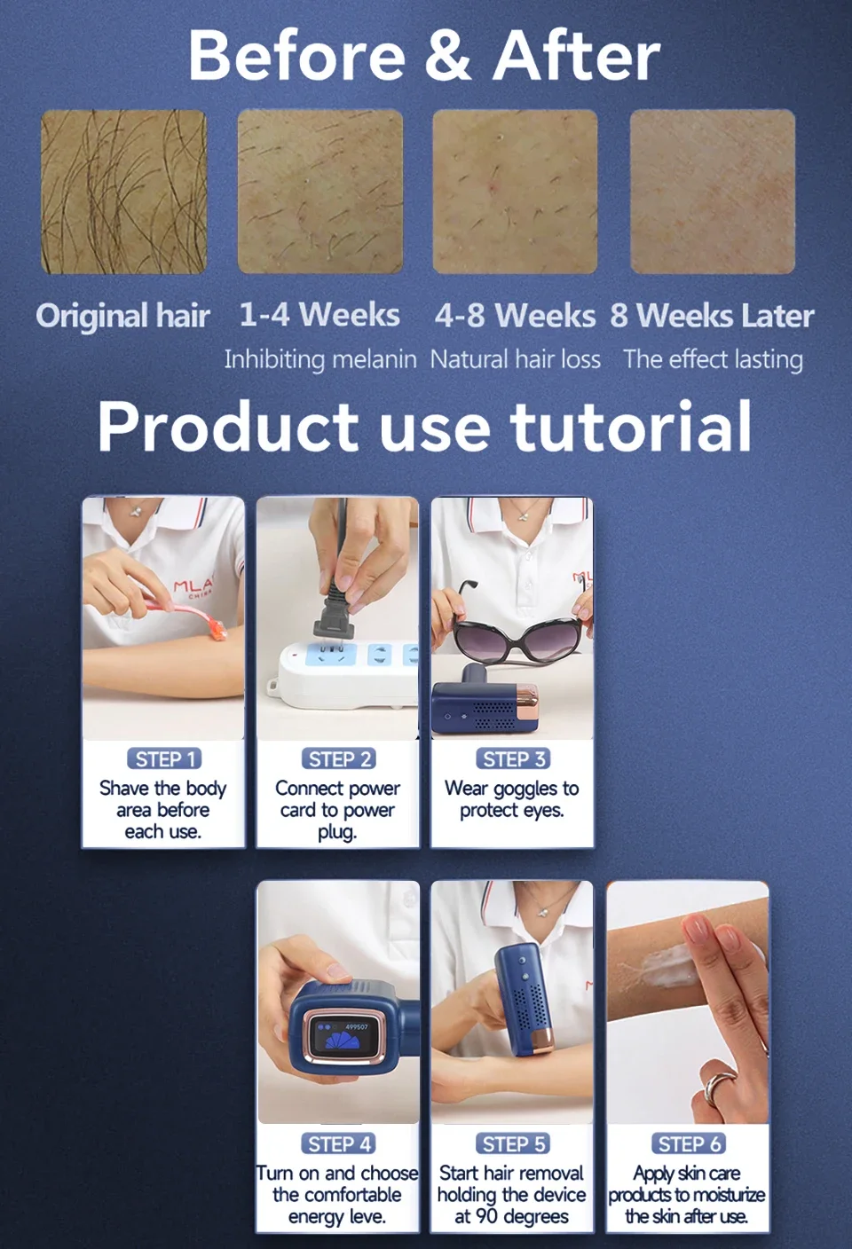 After just 8 weeks treatment,you can see a obvious effect! After this treatment regimen, use the MLAY painless permanent ipl hair removal system only as needed.