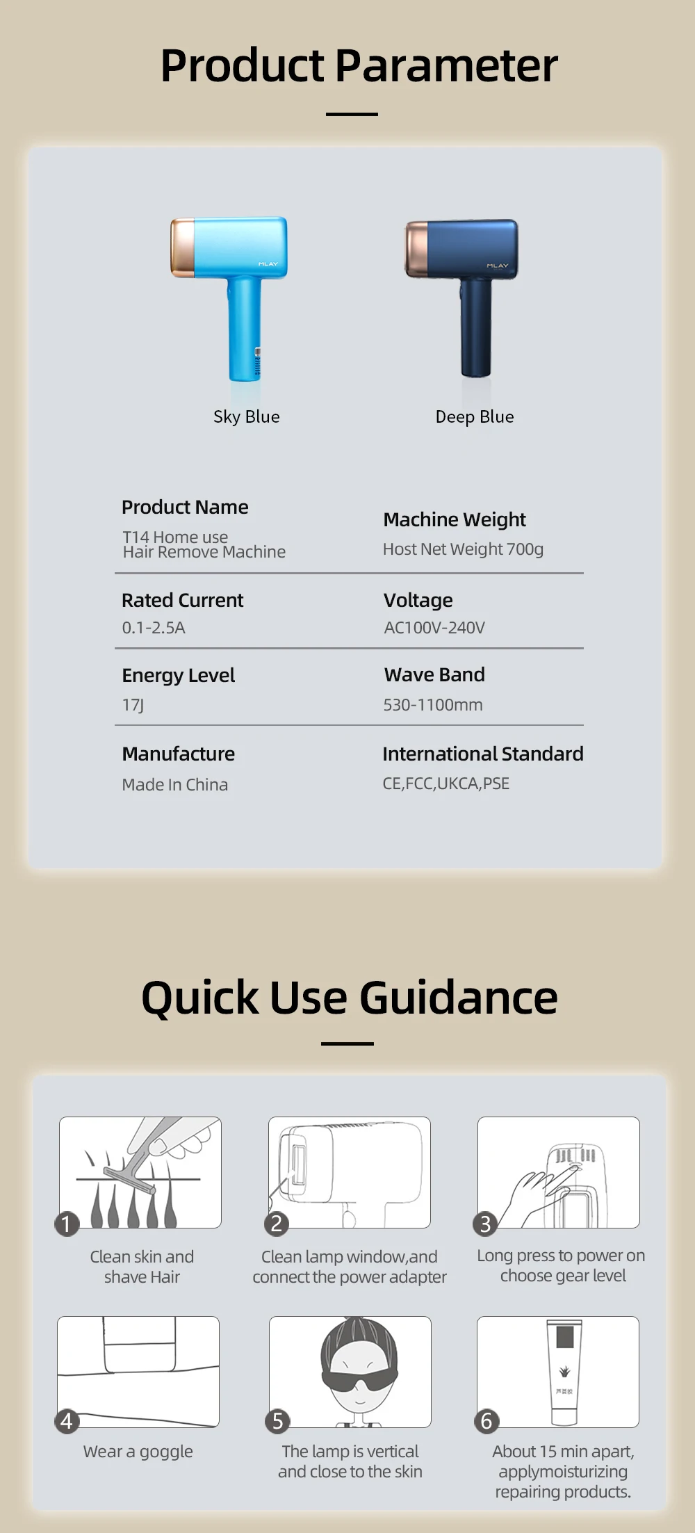 3.5level:Suitable for hard andthick hair or legs area(1.5min forLeg)