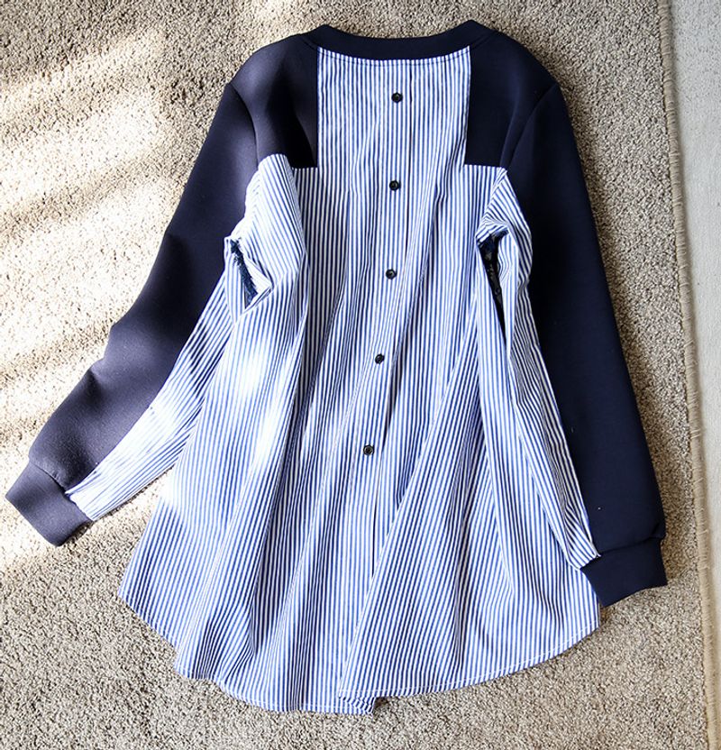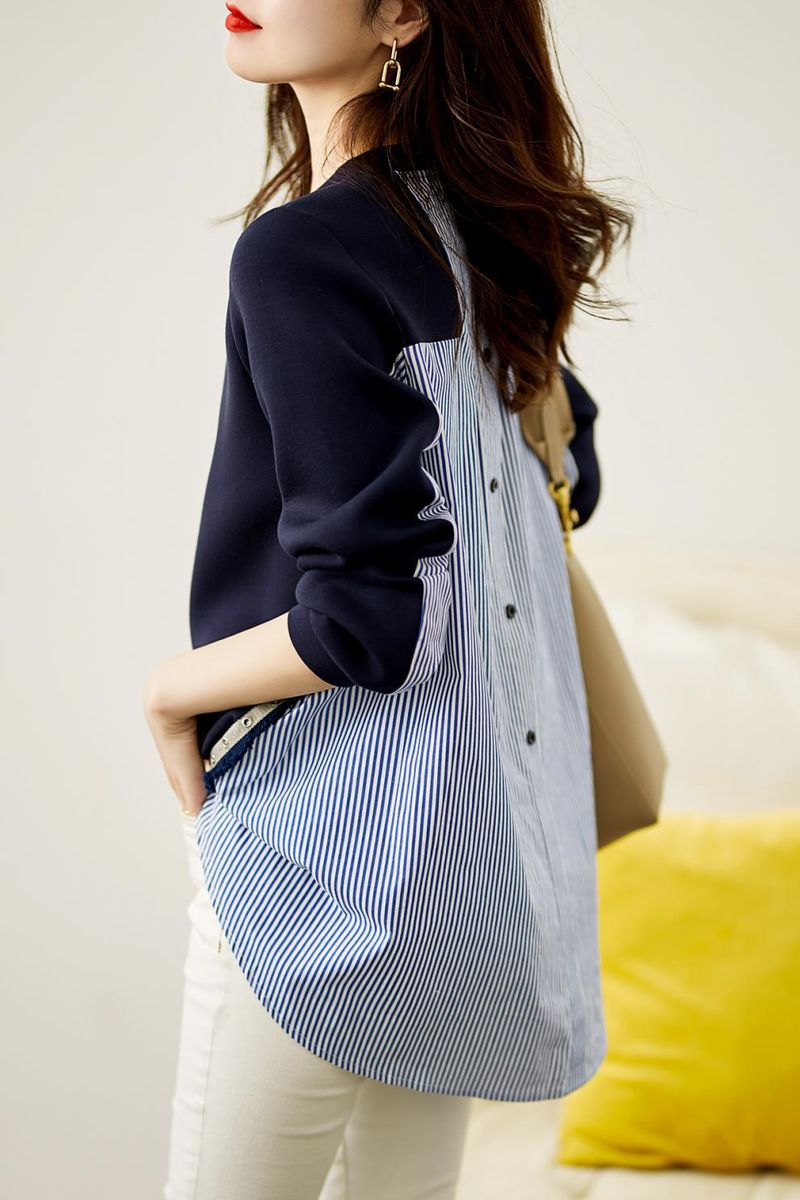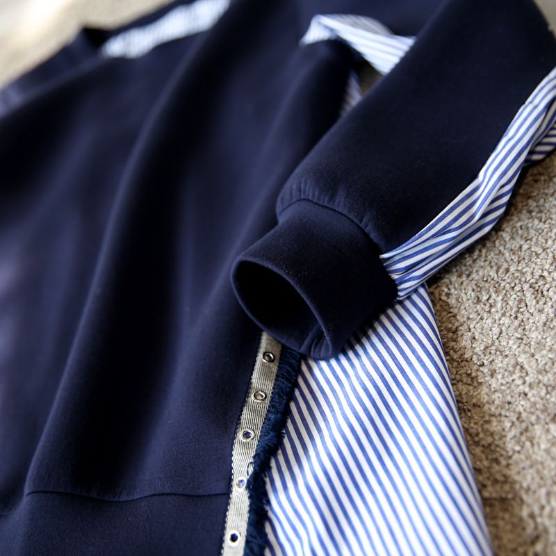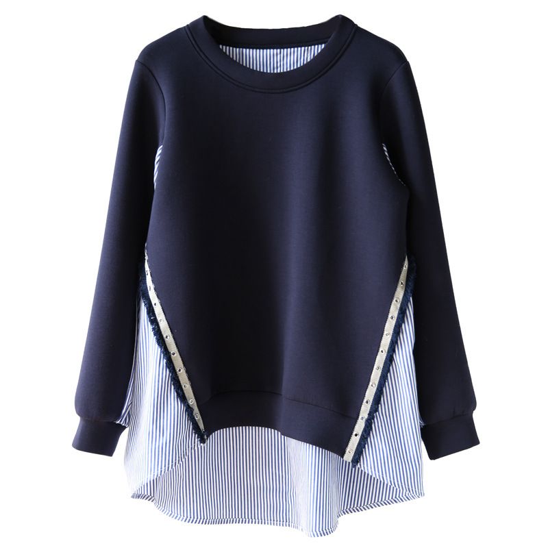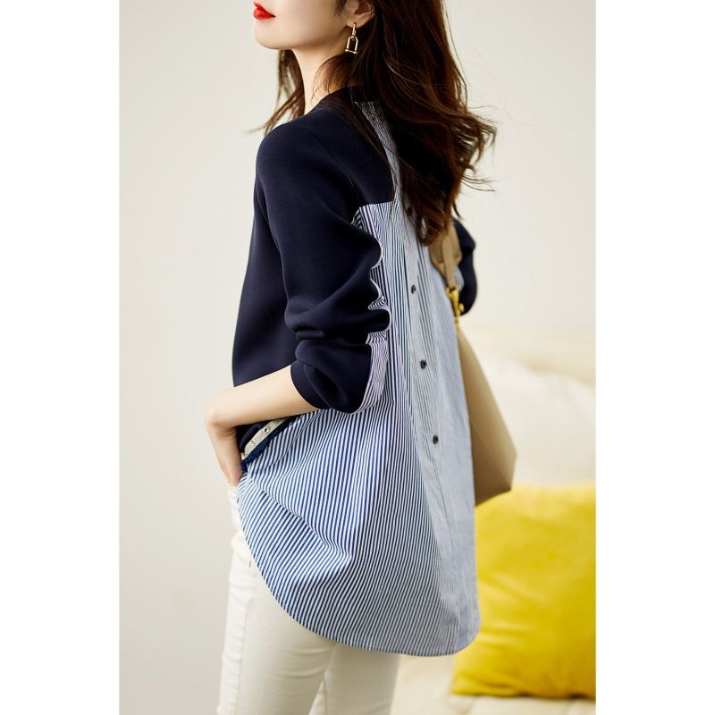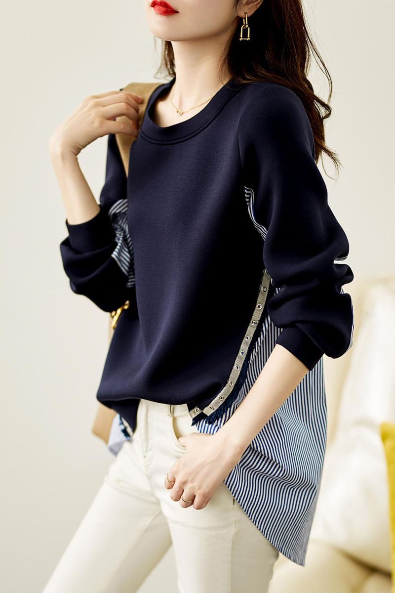 هوديي عنق دائري لربيع وخريف 2024، تصميم جديد بكم طويل مونوكروم، أسلوب فضفاض وكاسوالي، قطعتين توب للنساء.