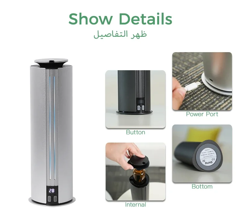 بخور الزيت العطري من سبائك الألومنيوم NAMSTE ، ناشر رائحة ليد متدرج ، تحكم بالبلوتوث ، عطر فندق منزلي ، السعة ، جديد
