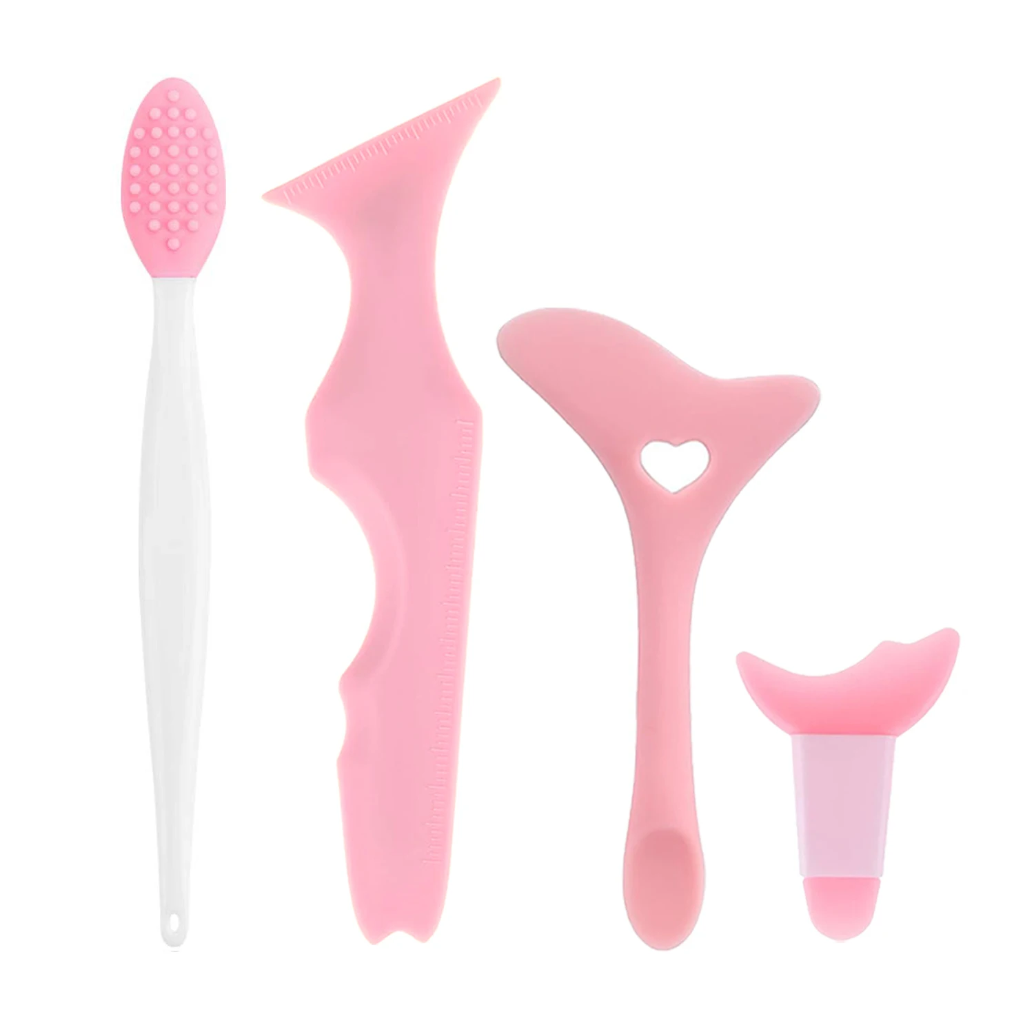 مجموعة استنسل تحديد العيون مكونة من 4 قطع، أداة تحديد عيون من السيليكون قابلة لإعادة الاستخدام، أداة مكياج لشفاه العين للنساء