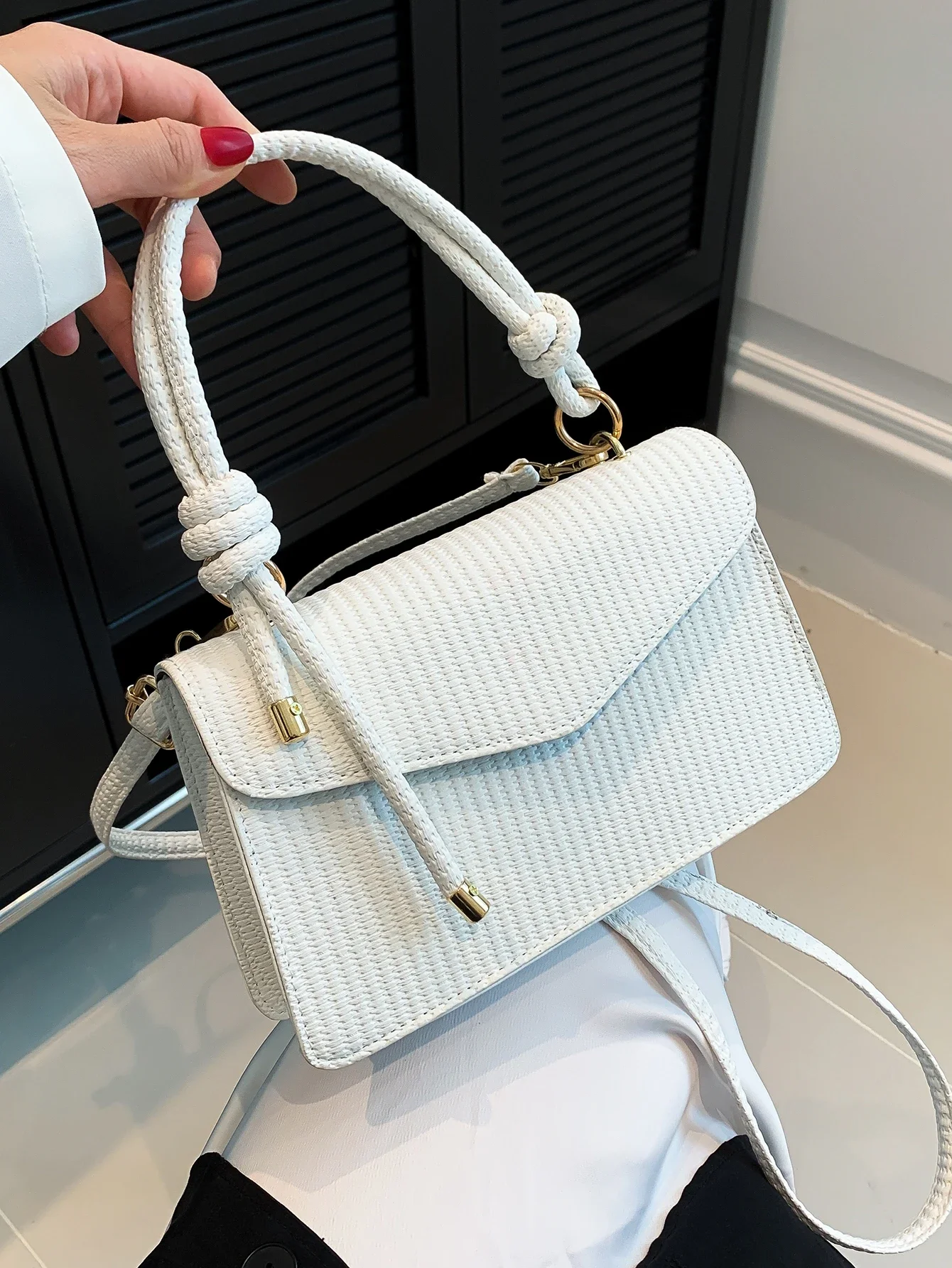 1.ابقِ أنيقًا مع حقيبة اليد العتيقة ذات اللون الأبيض الساحر والتي تتميز بملمس محبوك وتفاصيل فيونكة لطيفة.ارتديه كحقيبة كتف أو كروس للحصول على مظهر متعدد الاستخدامات.