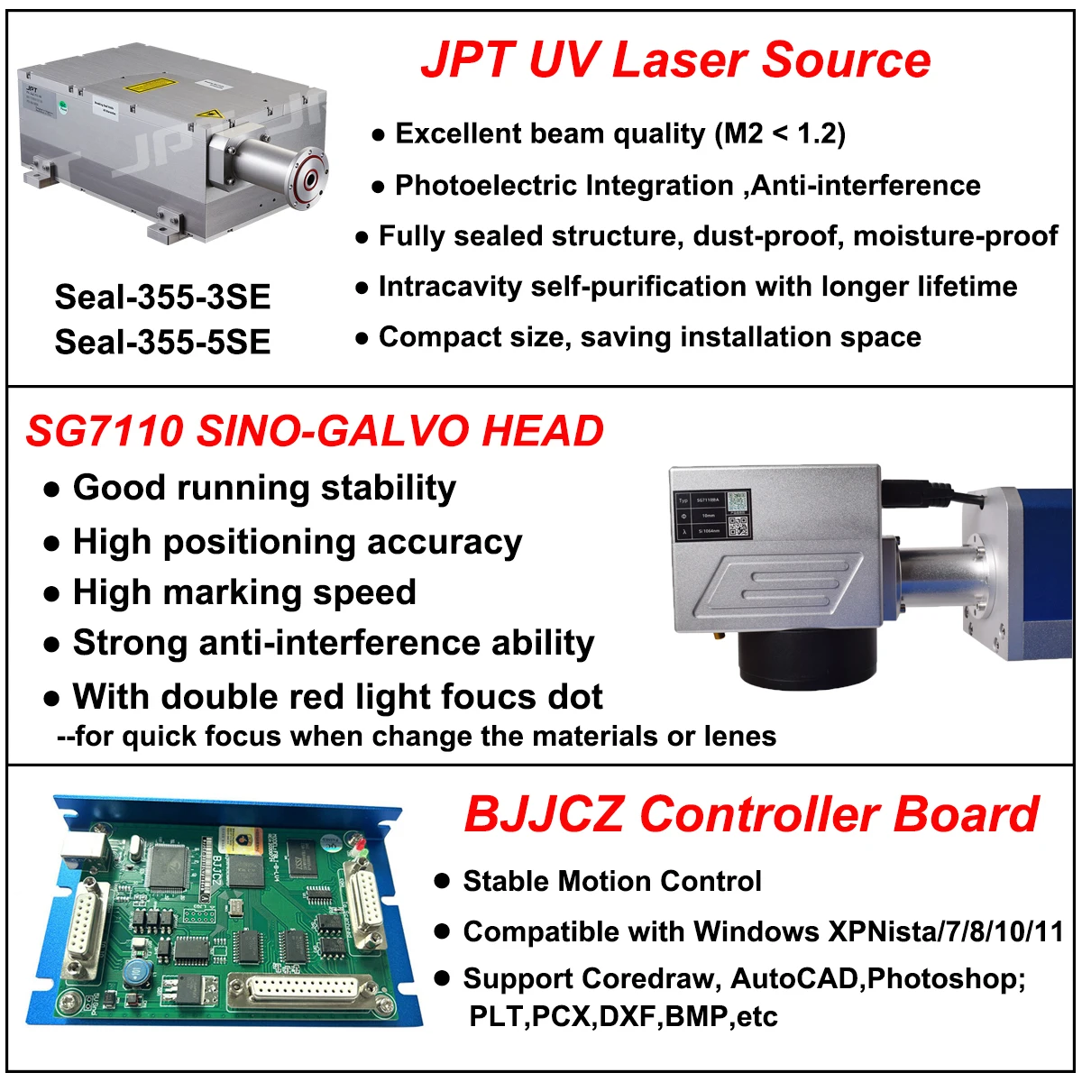 آلة التعليم بالليزر JPT ، آلة النقش لنقش الزجاج ، الكريستال ، الخشب ، الجلد ، المعدن ، 5 واط ، 3 واط