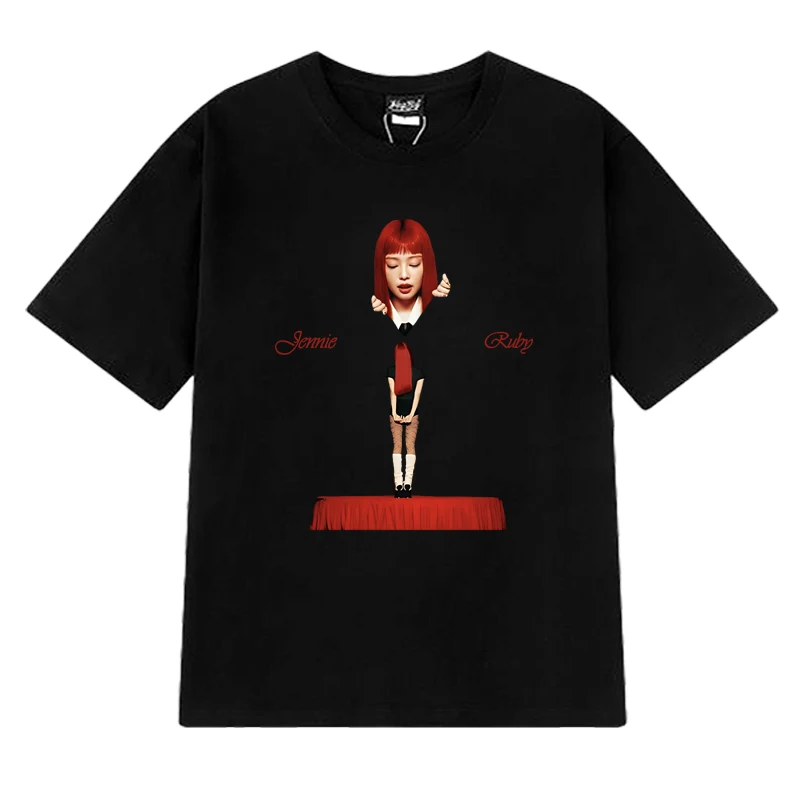 الجديد في جيني روبي 2025 ألبوم جديد تي شيرت أنيق KPop للرجال والنساء Y2k تي شيرت كبير الحجم بأكمام قصيرة للجنسين ملابس قطنية 100%