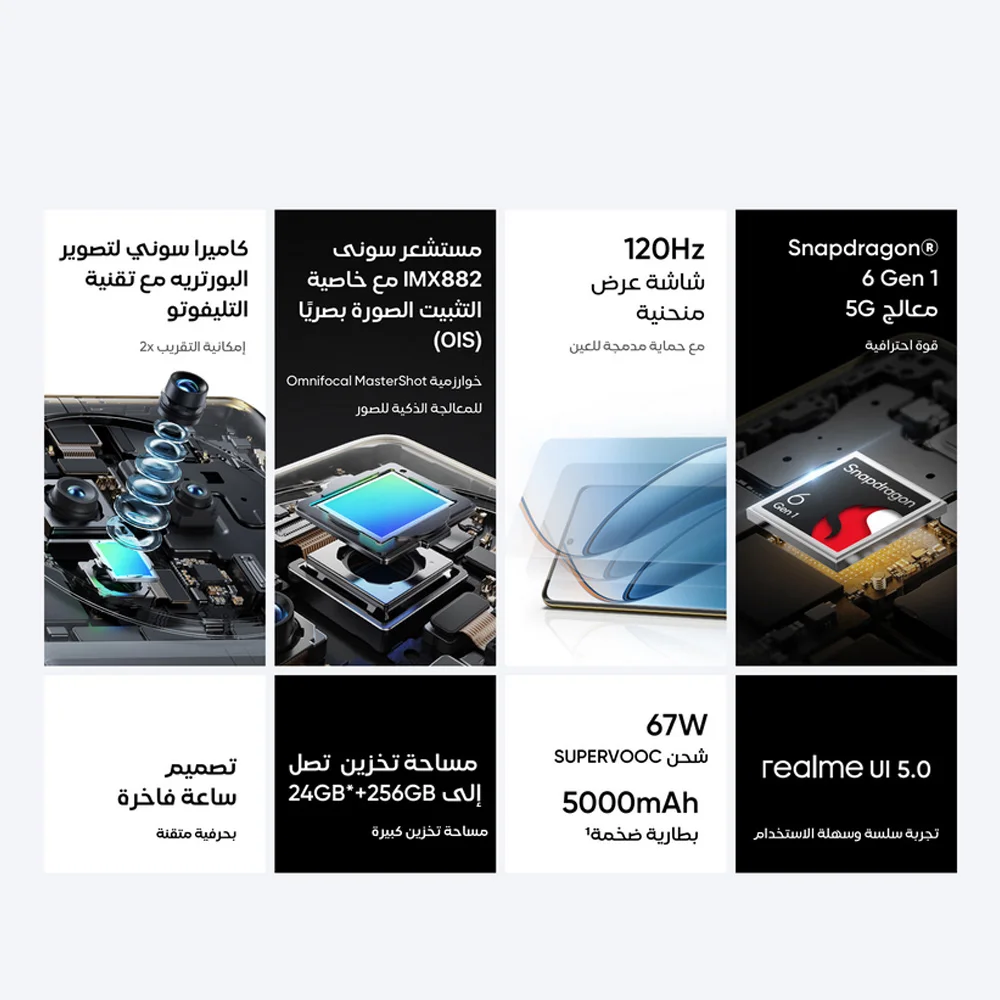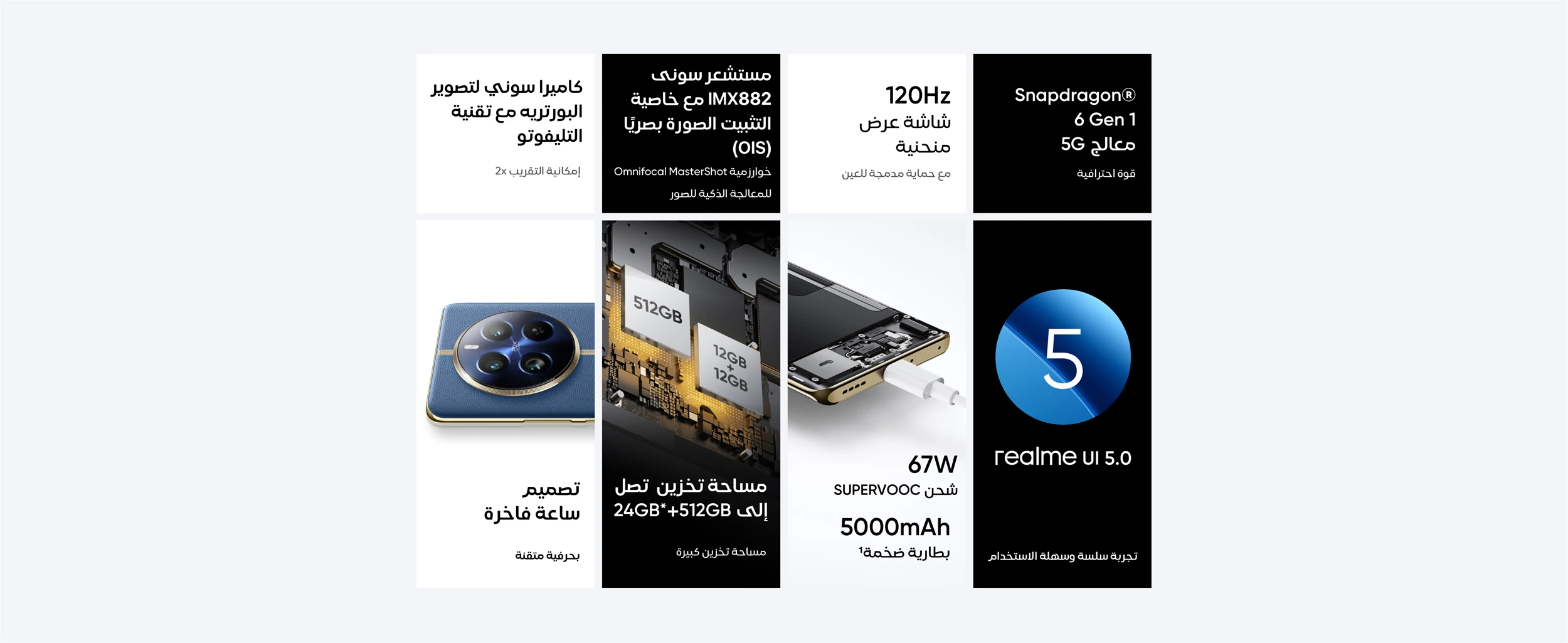 Realme 12Pro 5G 8 + 256GB الهاتف الذكي 32MP كاميرا صورة المقربة 120 هرتز عرض بطارية 5000 مللي أمبير Snapdragon 6 Gen 1 5G شرائح