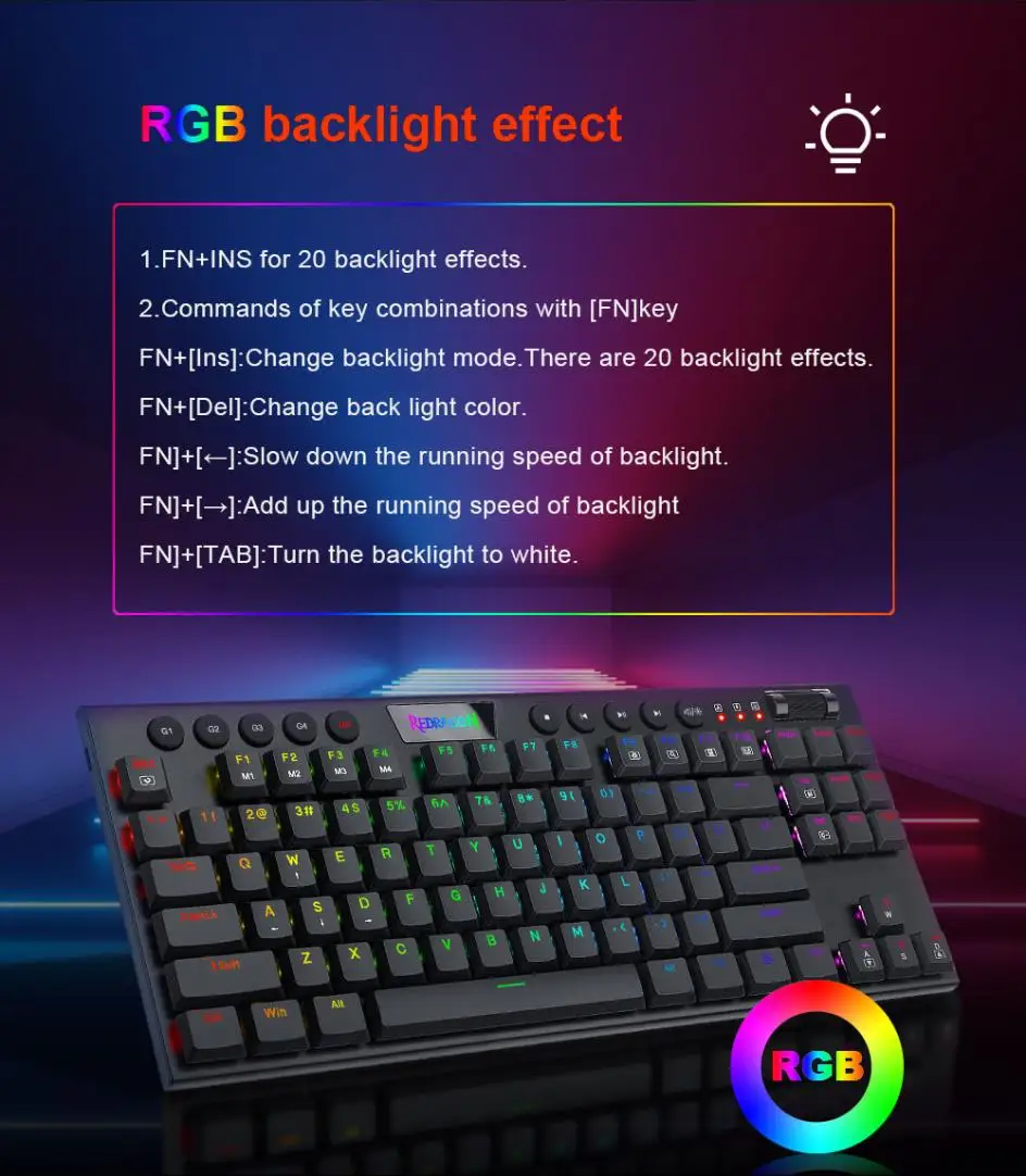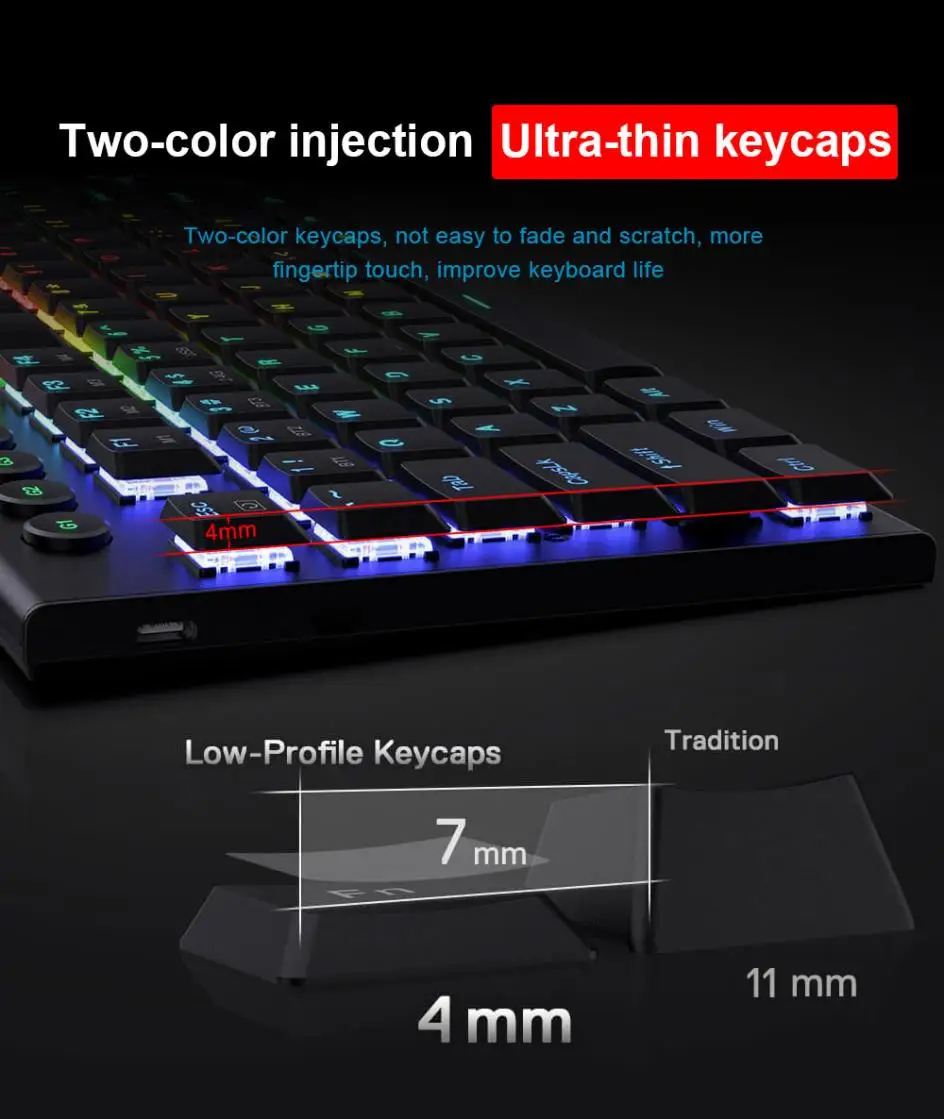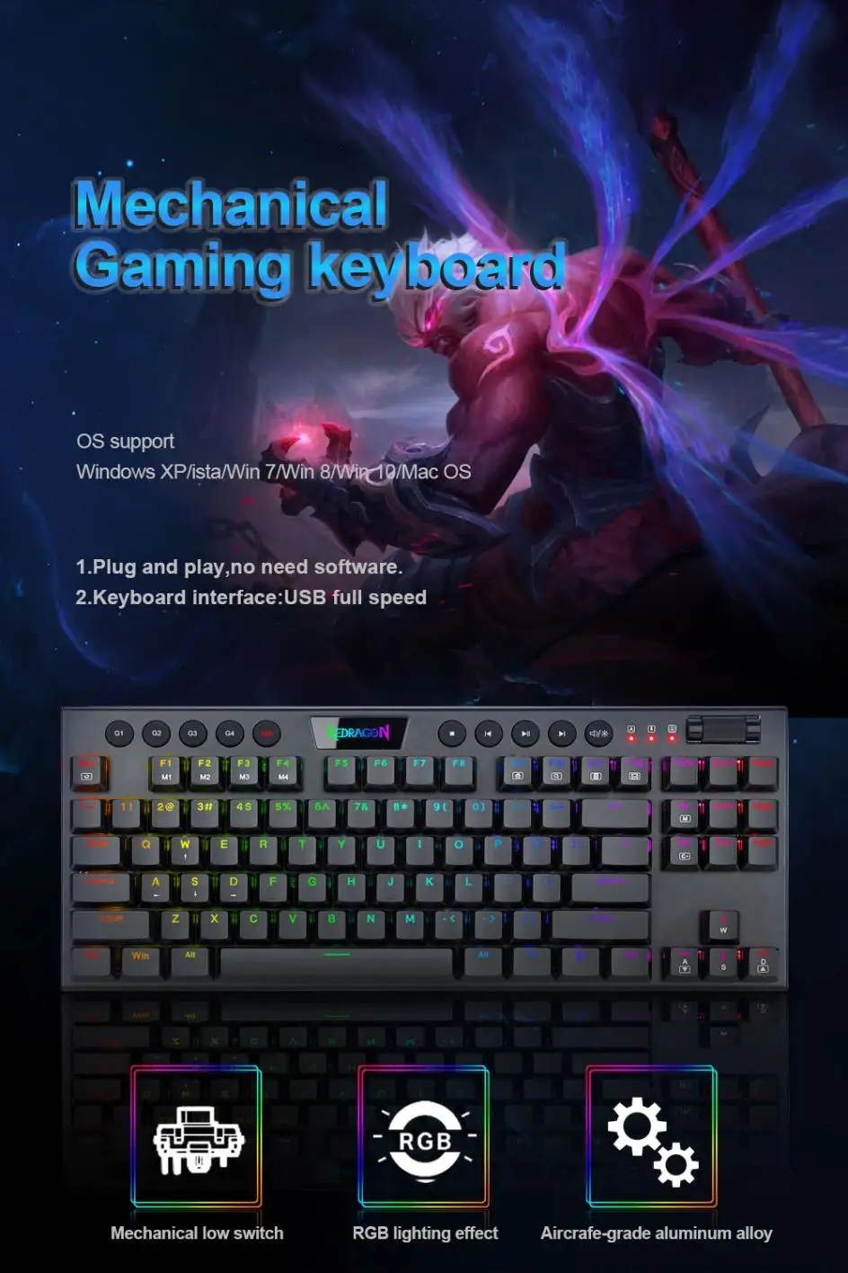 جديد TKL K622 RGB USB صغير نحيف رفيع للغاية مصمم لوحة مفاتيح ميكانيكية سلكية للألعاب مفتاح أحمر 87 مفتاحًا للكمبيوتر الشخصي