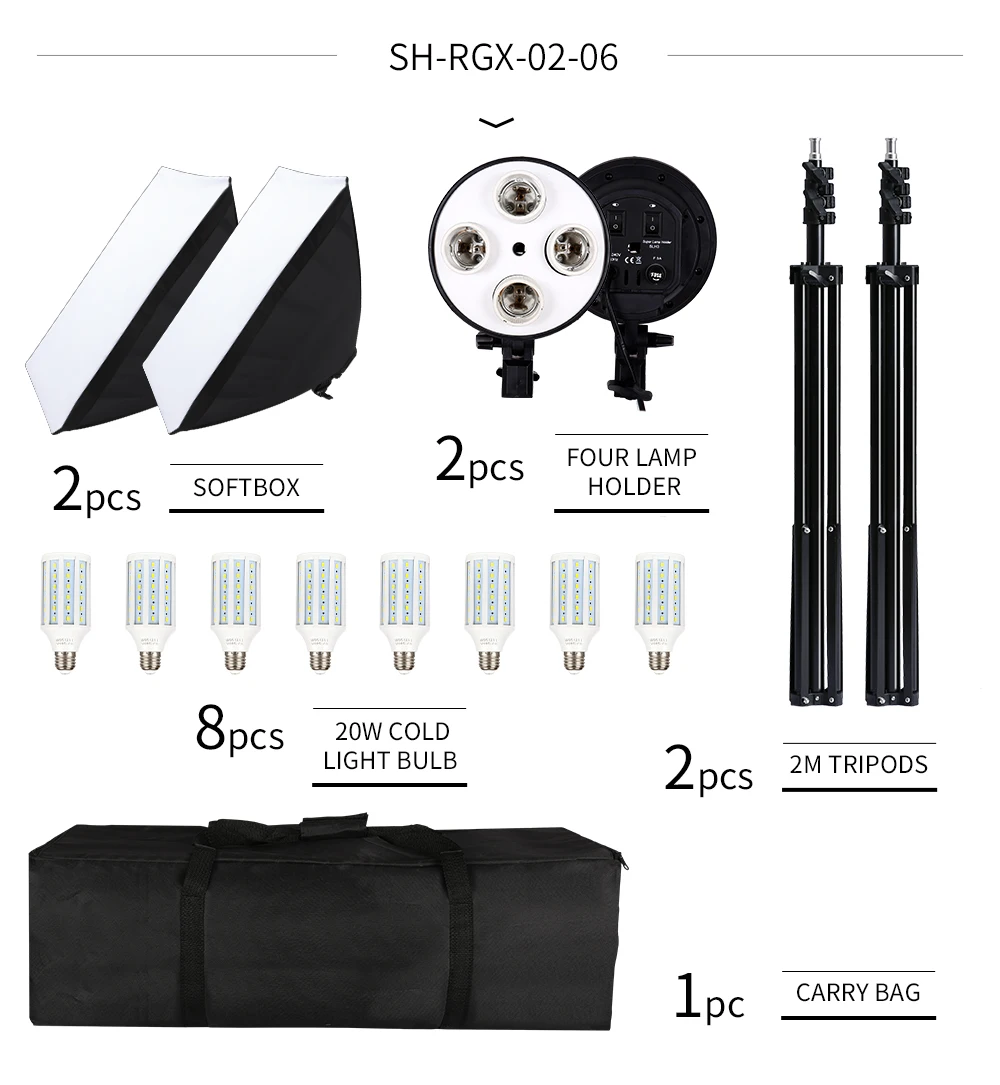 SH التصوير الفوتوغرافي سوفت بوكس طقم الإضاءة ، صور استوديو طقم صندوق إضاءة ، التصوير المستمر ضوء مصباح لينة صندوق مع E27 قاعدة الملحقات