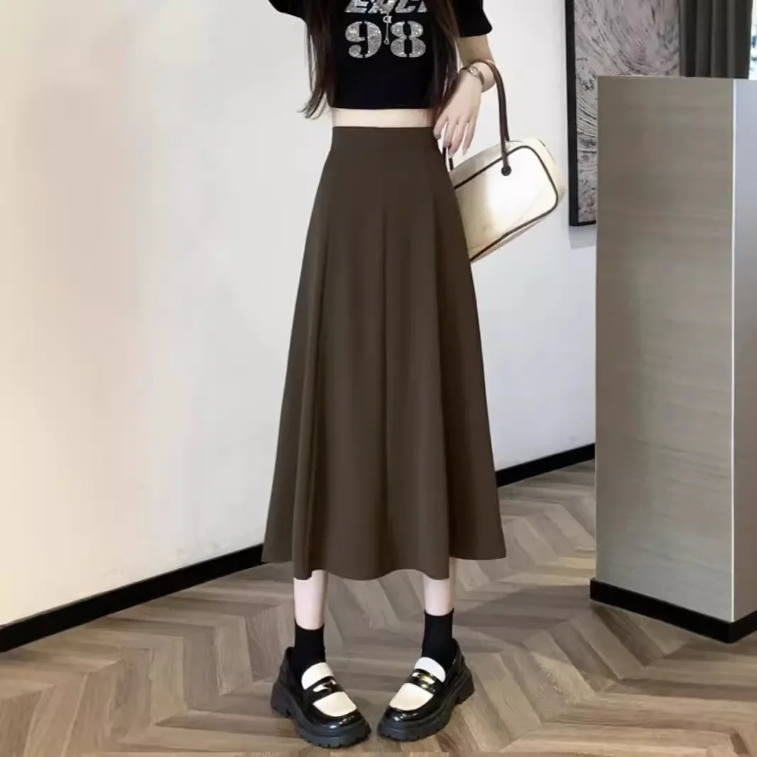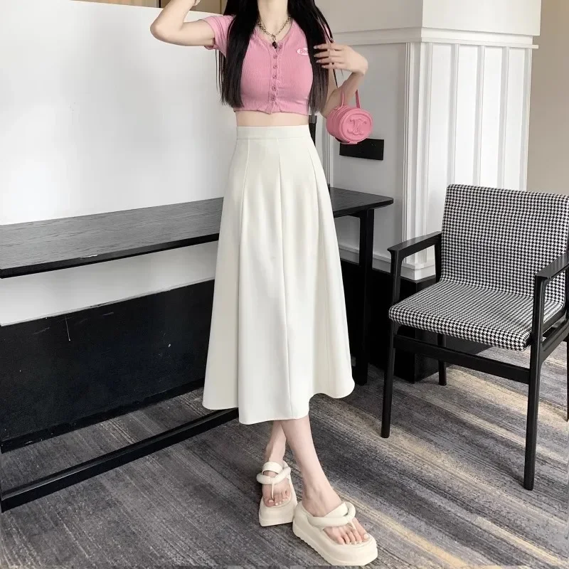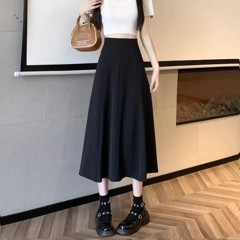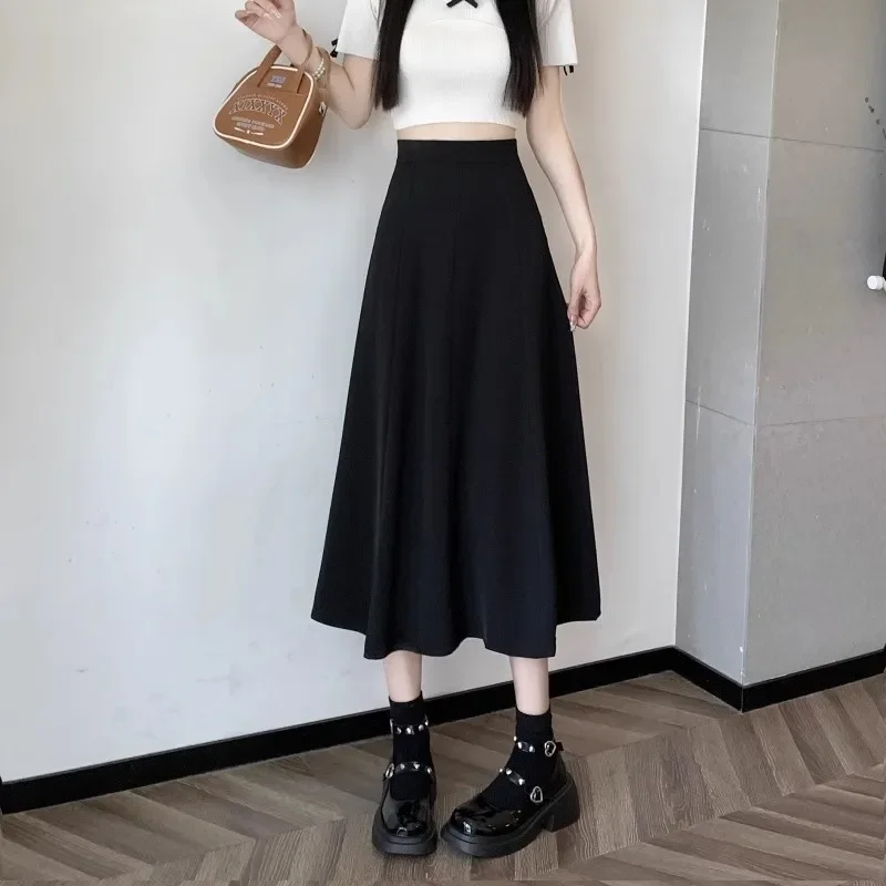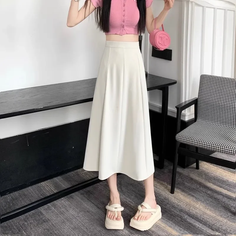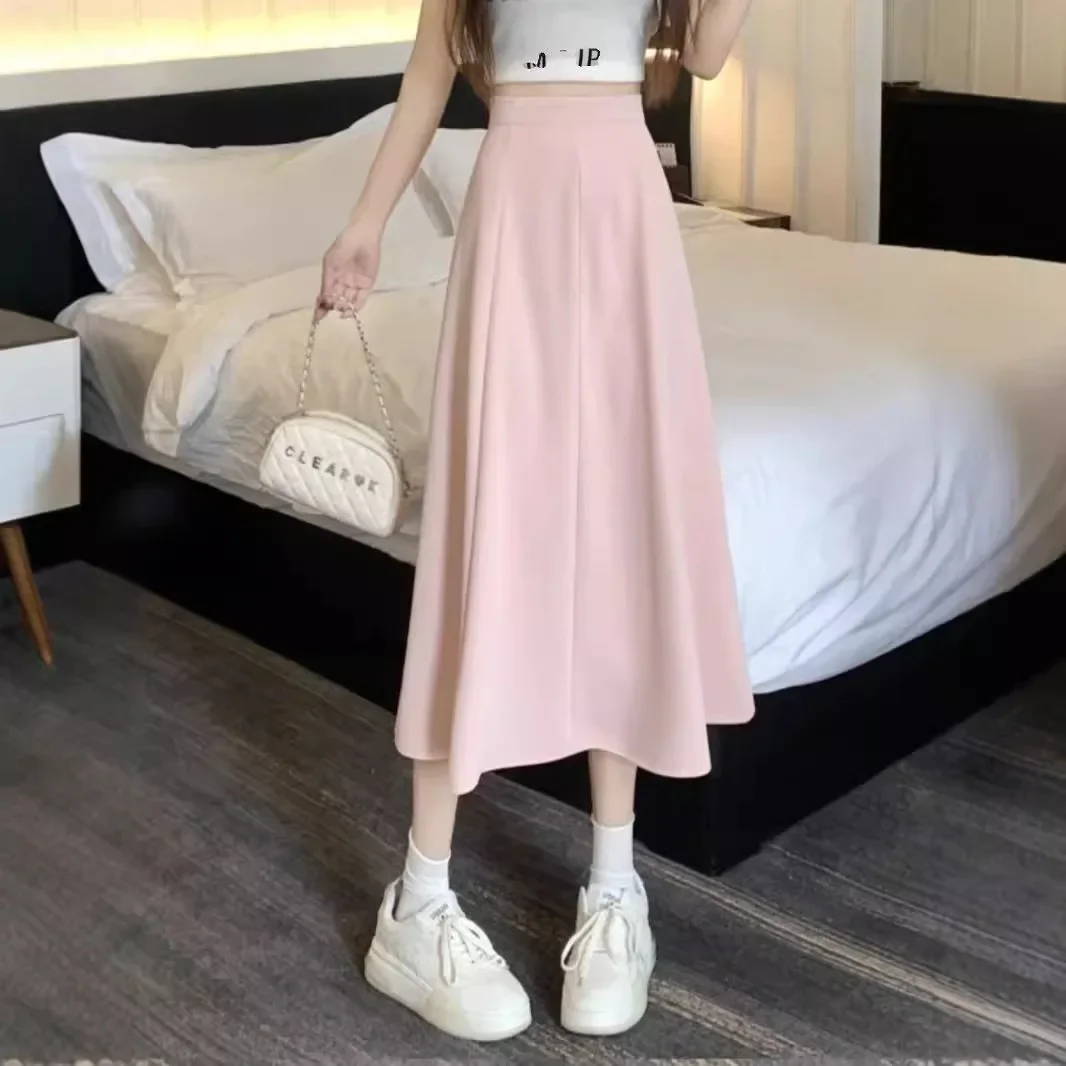 ارتفاع الخصر بدلة غير رسمية مظلة تنورة المرأة حجم صغير التخسيس ميدي طول اللف ألف خط التفاف حول نصف طول تنورة