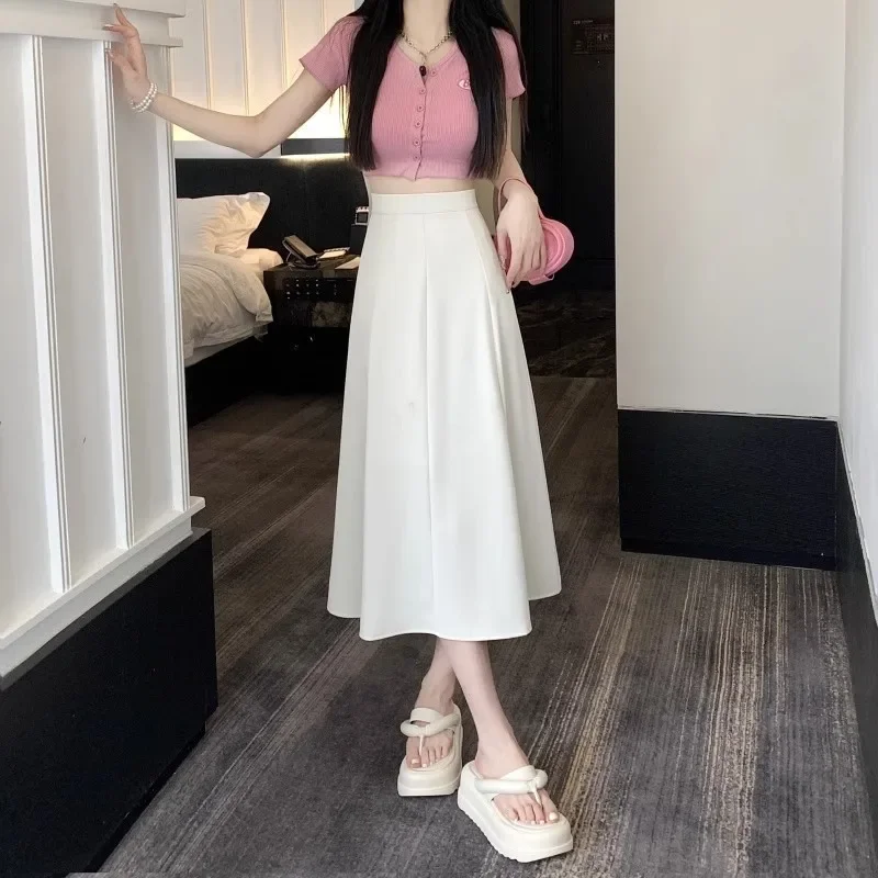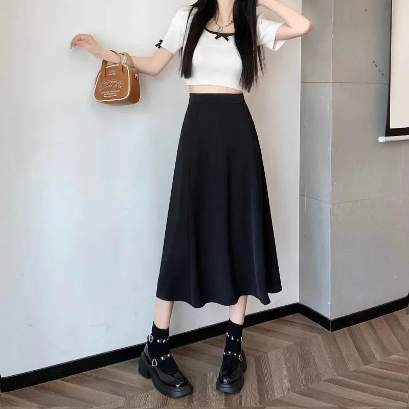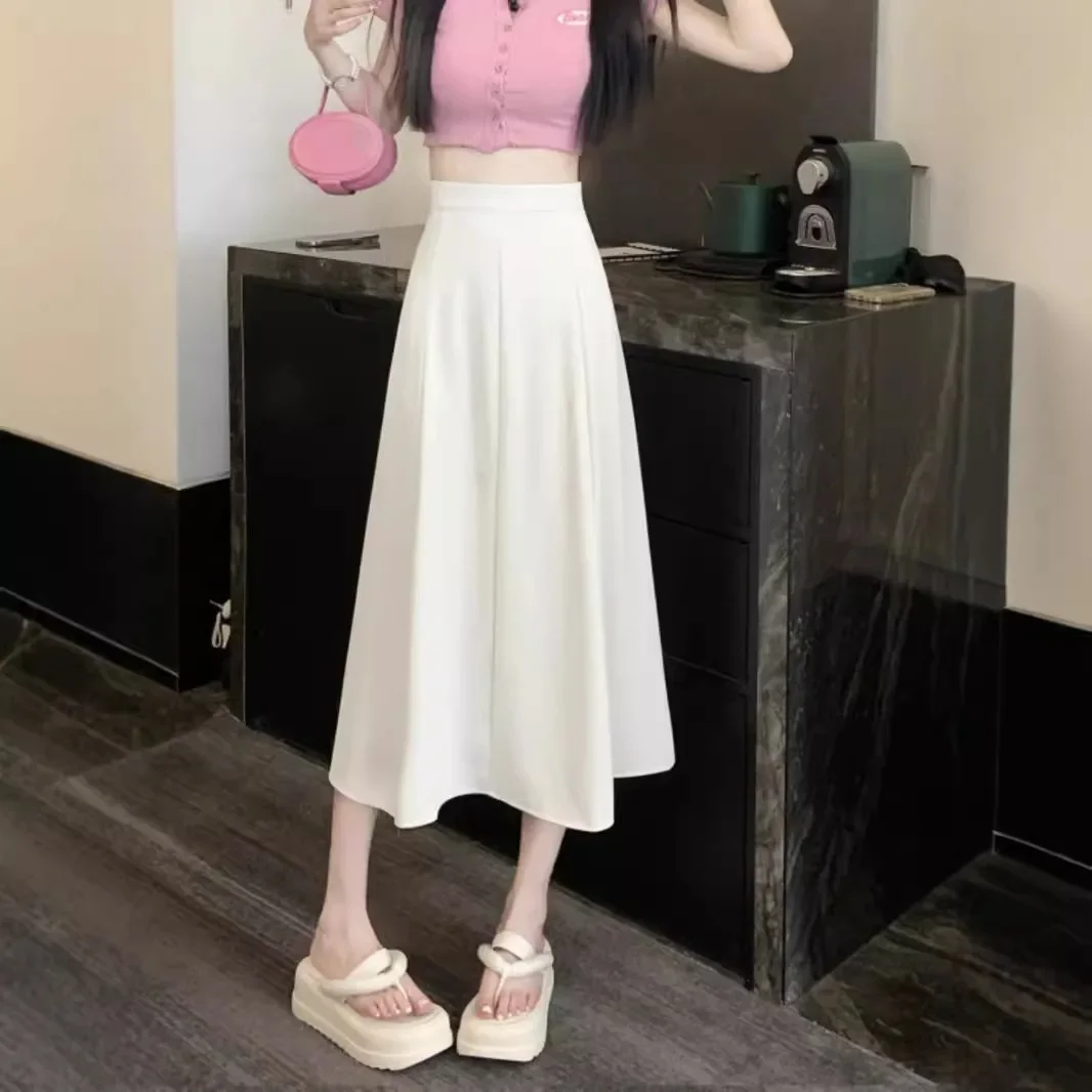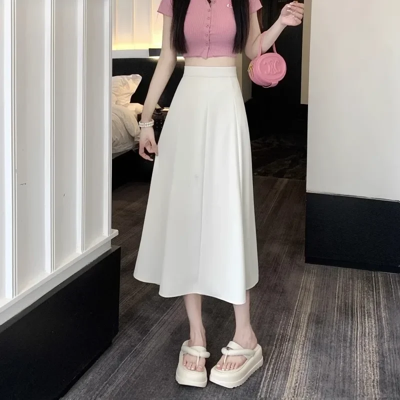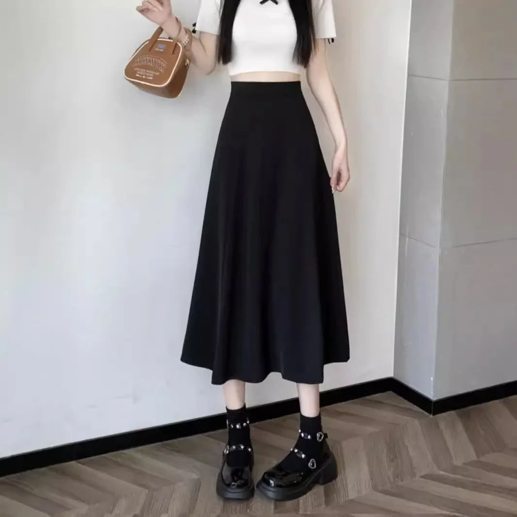 ارتفاع الخصر بدلة غير رسمية مظلة تنورة المرأة حجم صغير التخسيس ميدي طول اللف ألف خط التفاف حول نصف طول تنورة