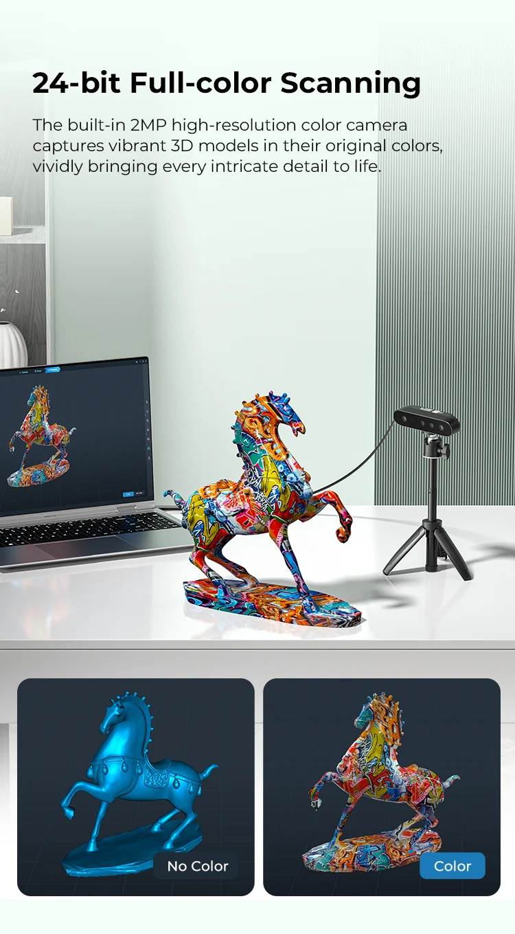 تلتقط الكاميرا الملونة المدمجة عالية الدقة بدقة 2 ميجابكسل نماذج ثلاثية الأبعاد نابضة بالحياة بألوانها الأصلية، مما يضفي الحيوية على كل التفاصيل المعقدة.