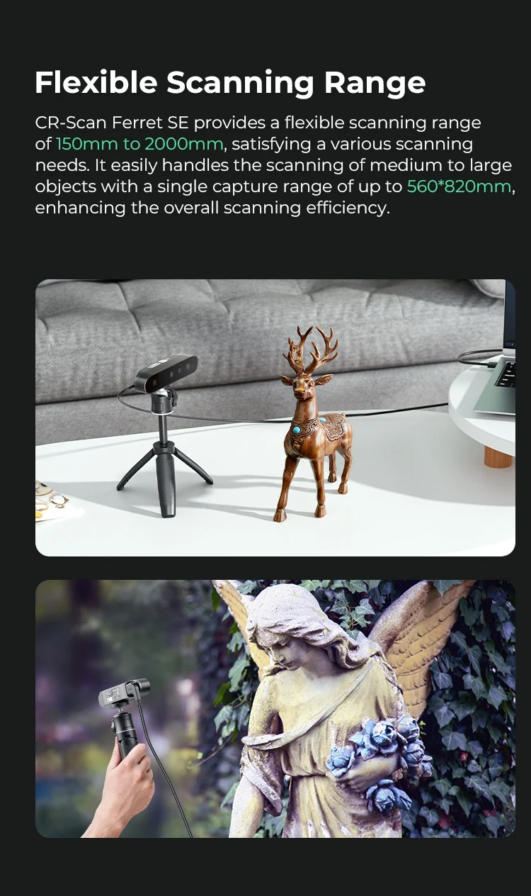 ، تلبية احتياجات المسح المختلفة.فهو يتعامل بسهولة مع مسح الأشياء المتوسطة إلى الكبيرة باستخدام نطاق التقاط واحد يصل إلى