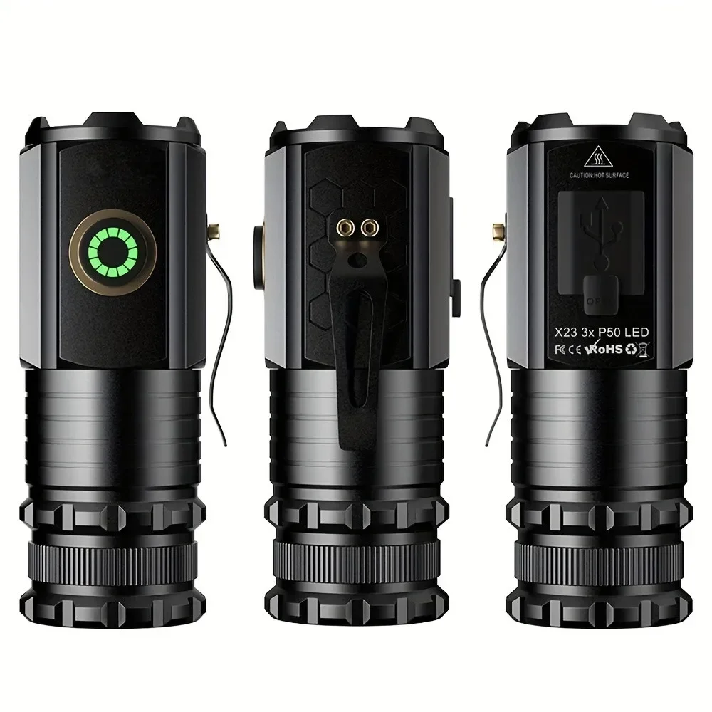 • شحن USB قوي:تضمن هذه الشعلة ، المجهزة بآلية شحن USB قوية ، الشحن السريع والفعال ، مما يجعلها رفيقًا موثوقًا لمغامراتك.