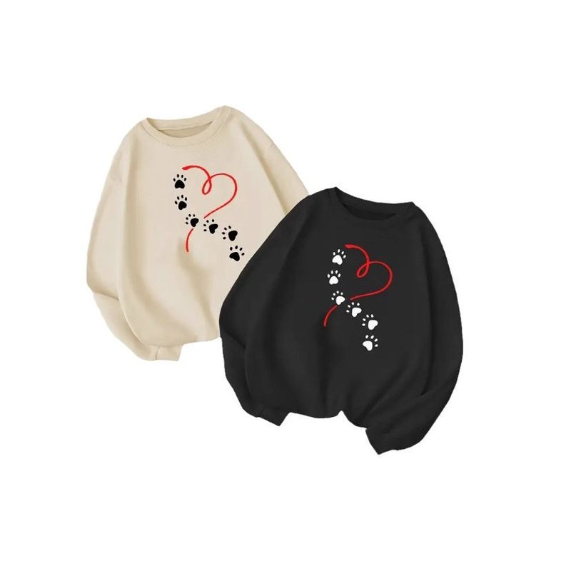 ملابس نسائية 2 حزمة توبز مطبوعة للأزواج بتصميم عصري، سويت شيرت خفيف مع أكمام طويلة ورقبة مستديرة للاستخدام اليومي في الخريف والشتاء، طباعة 1900.