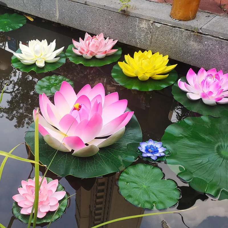 10/17/28 سنتيمتر لوتس زهرة اصطناعية العائمة وهمية لوتس النبات المياه زنبق المشهد الصغير لبركة حديقة حمام سباحة ديكور