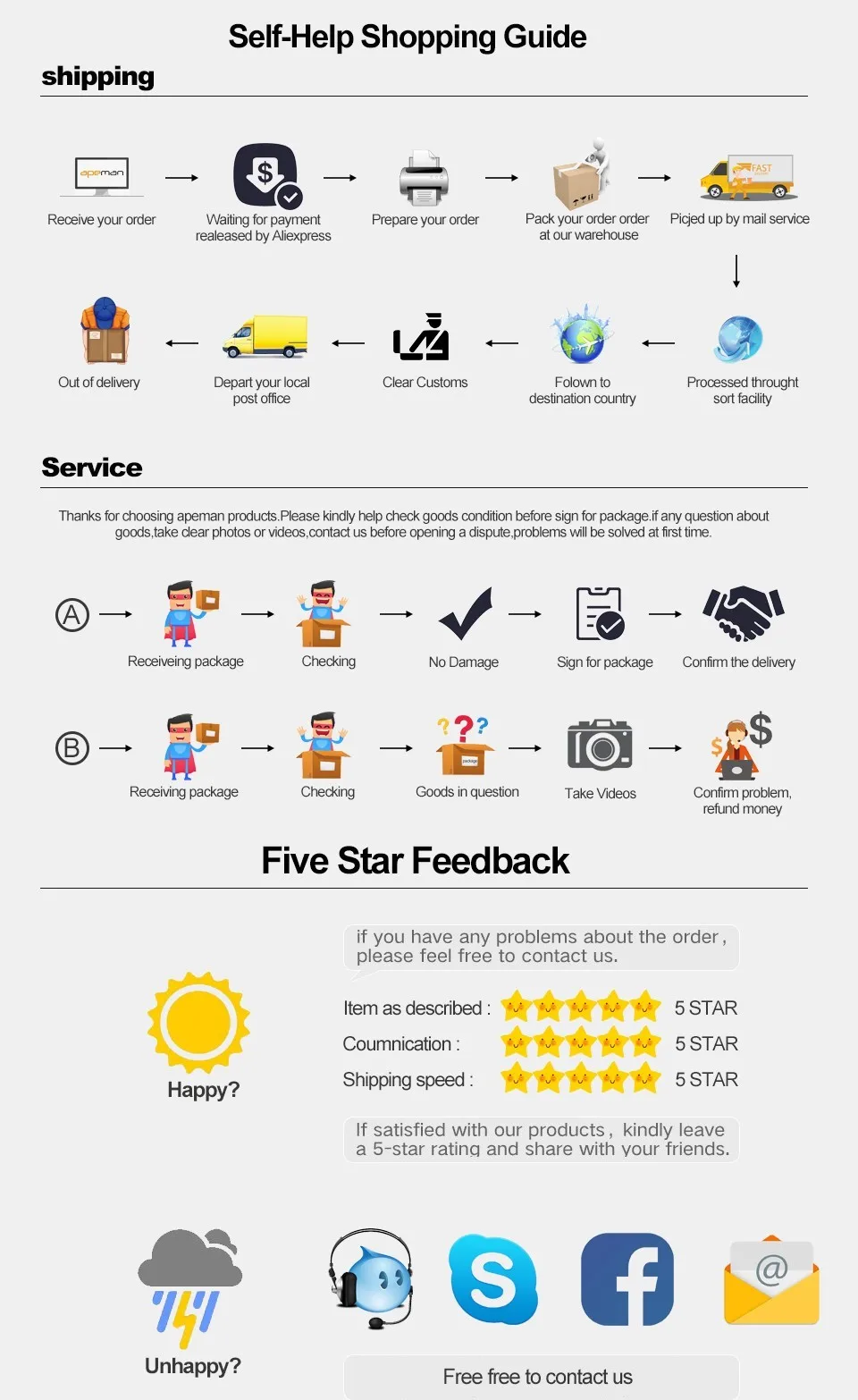 6. عادة ، سنرسل المنتجات خلال يوم عمل واحد بمجرد اكتمال عملية الدفع. عادة ، بعد إرسالها ، يستغرق نظام اكسبرس 7 أيام عمل لتحديث رقم التتبع إلى النظام. أ في الغالب ، يمكن تسليم الطرد في 6 أسابيع. إذا لم تستلم الطرد الخاص بك في الوقت المناسب ، يرجى التفضل بإبلاغنا ، وسوف نقوم بتتبع الطرد