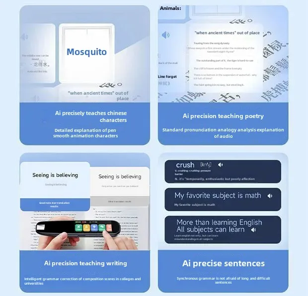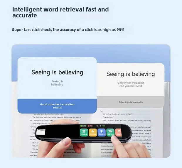 • الترجمة الذكية :يوفر هذا القلم الذكي ترجمة قاموسية ذكية، مما يجعله أداة لا تقدر بثمن لمتعلمي اللغات والمسافرين.