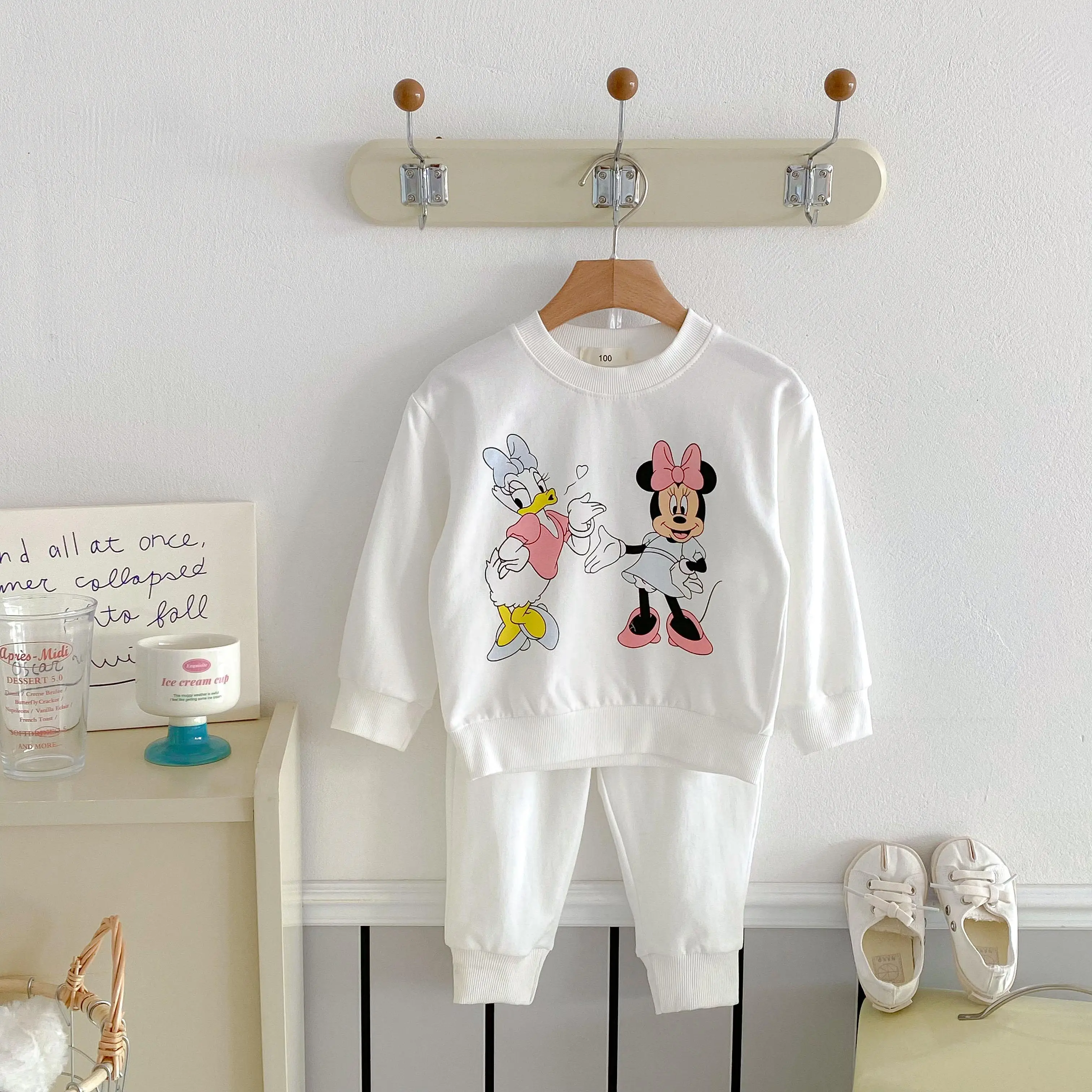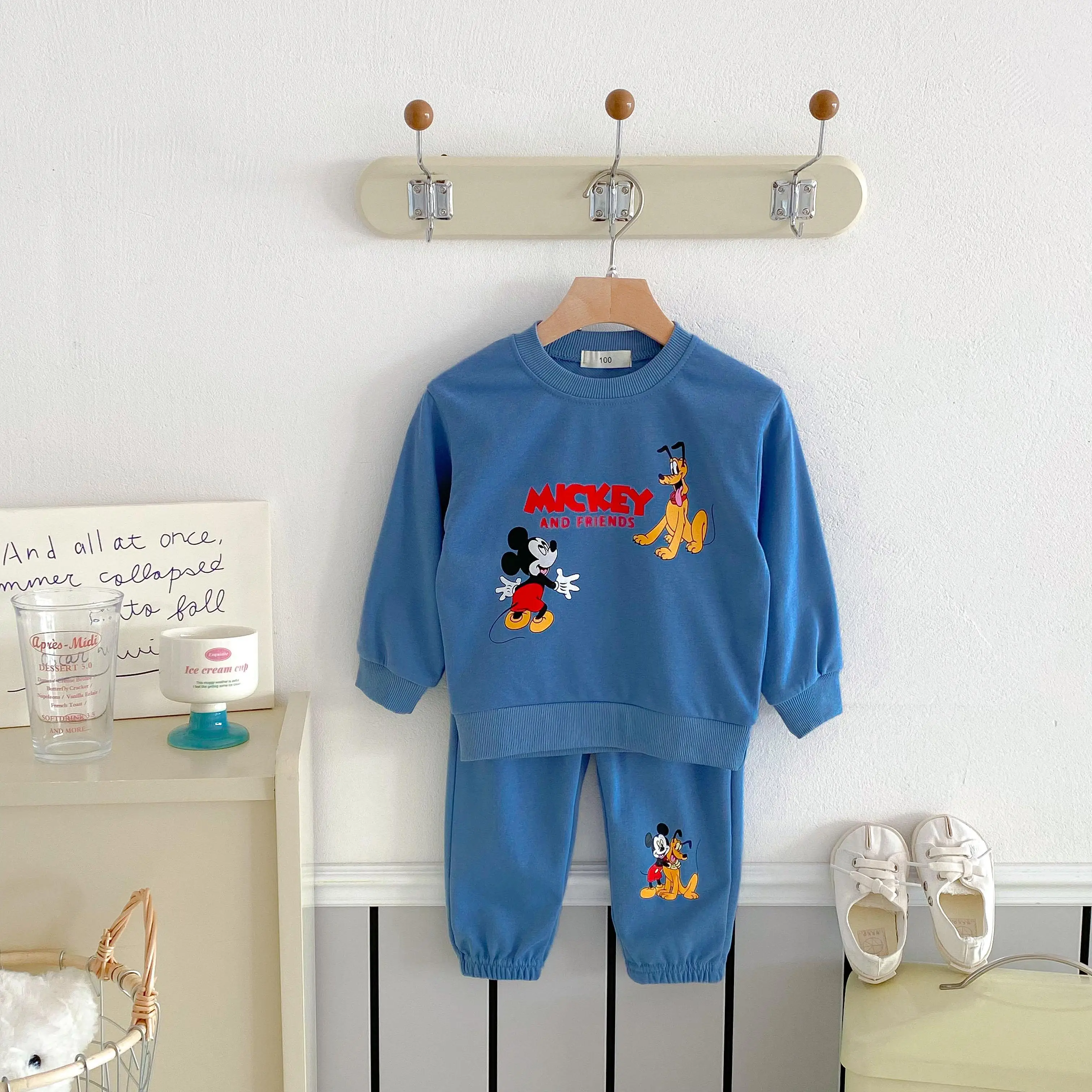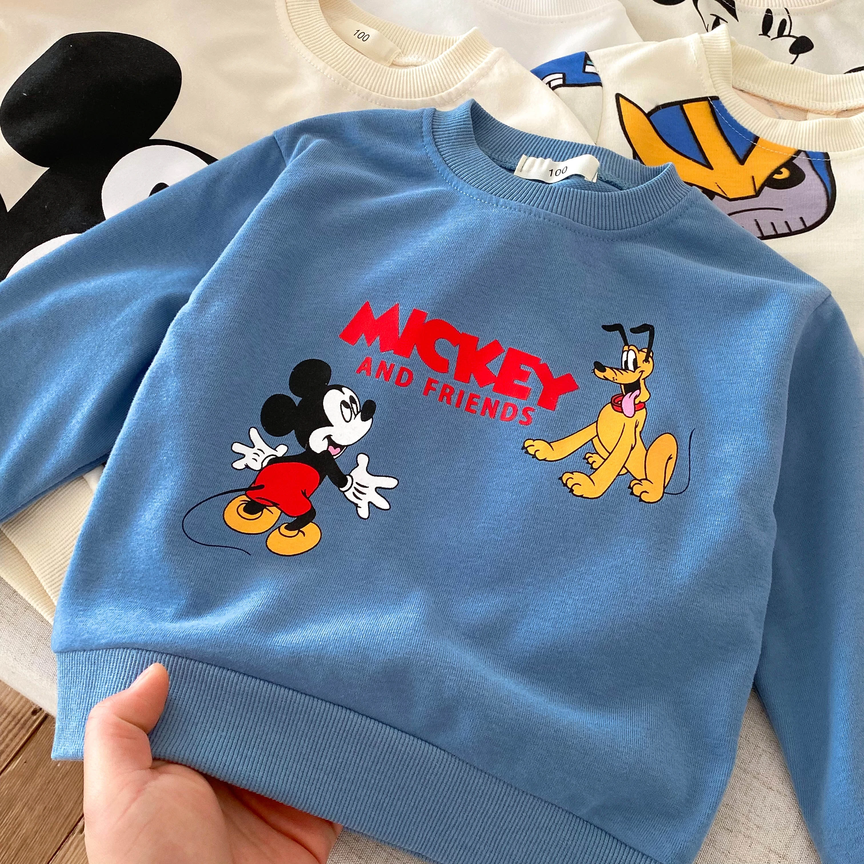 بوتيك ملابس الأطفال ديزني ملابس رياضية بأكمام طويلة طباعة الكرتون فضفاضة بلوزات غير رسمية مجموعة ملابس أطفال الخريف