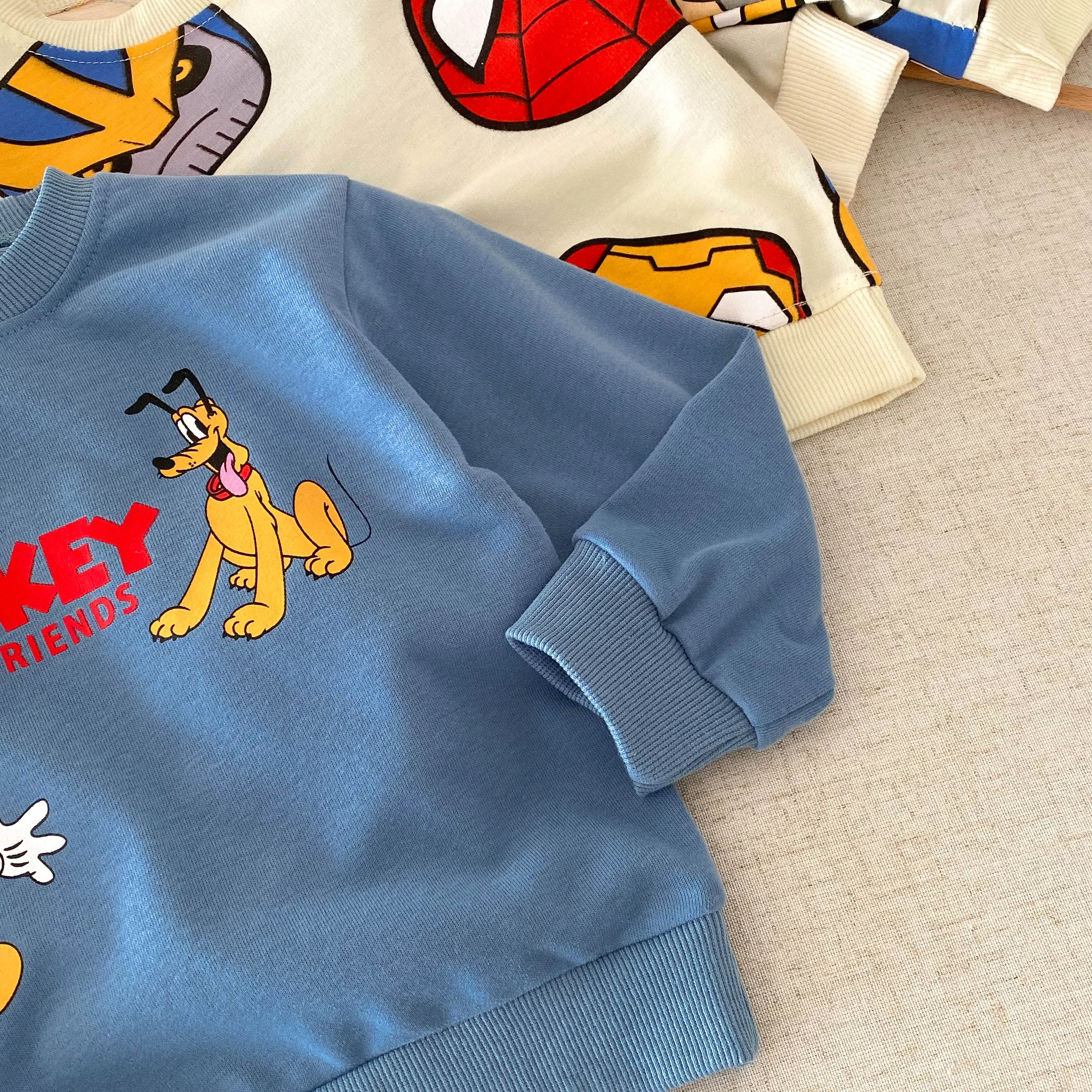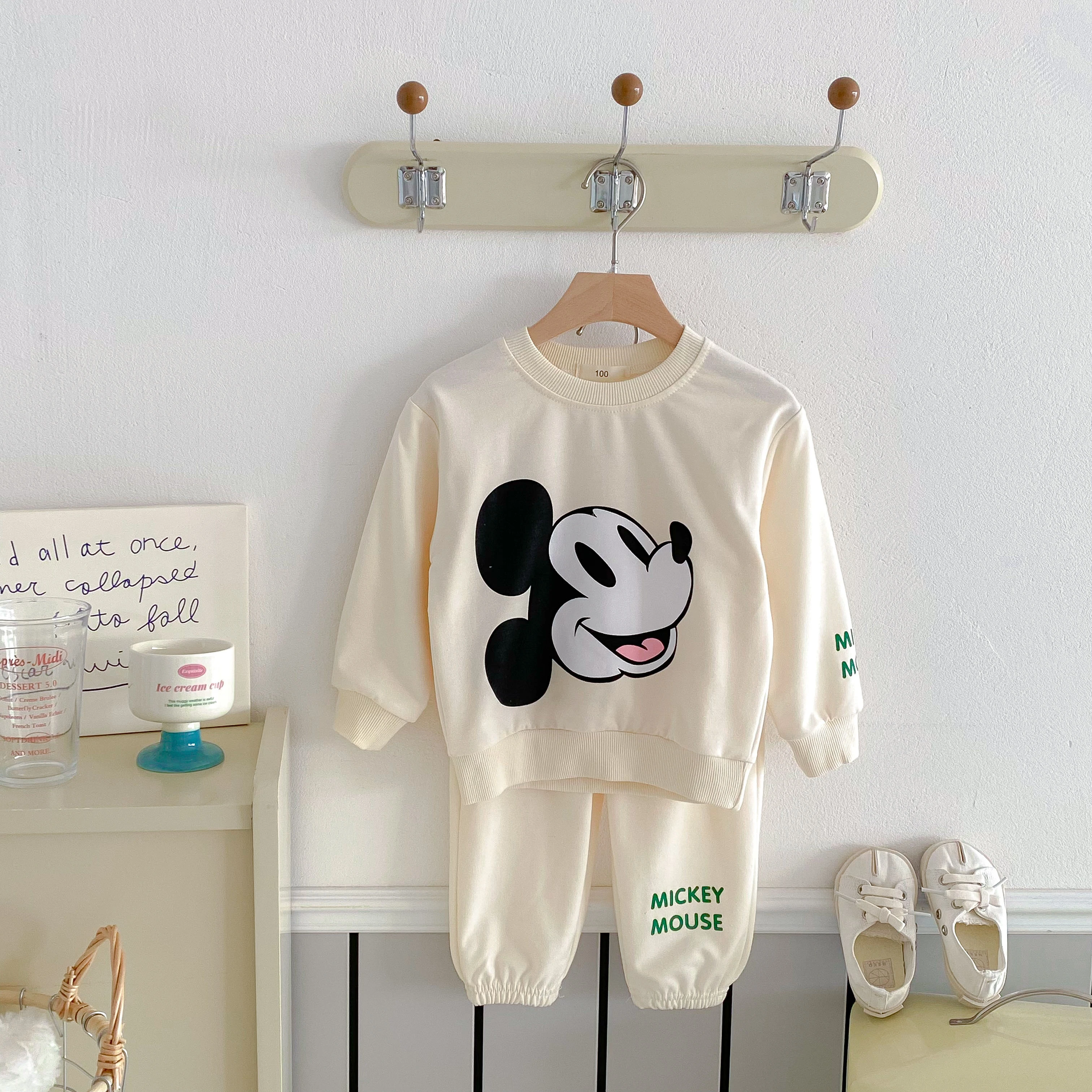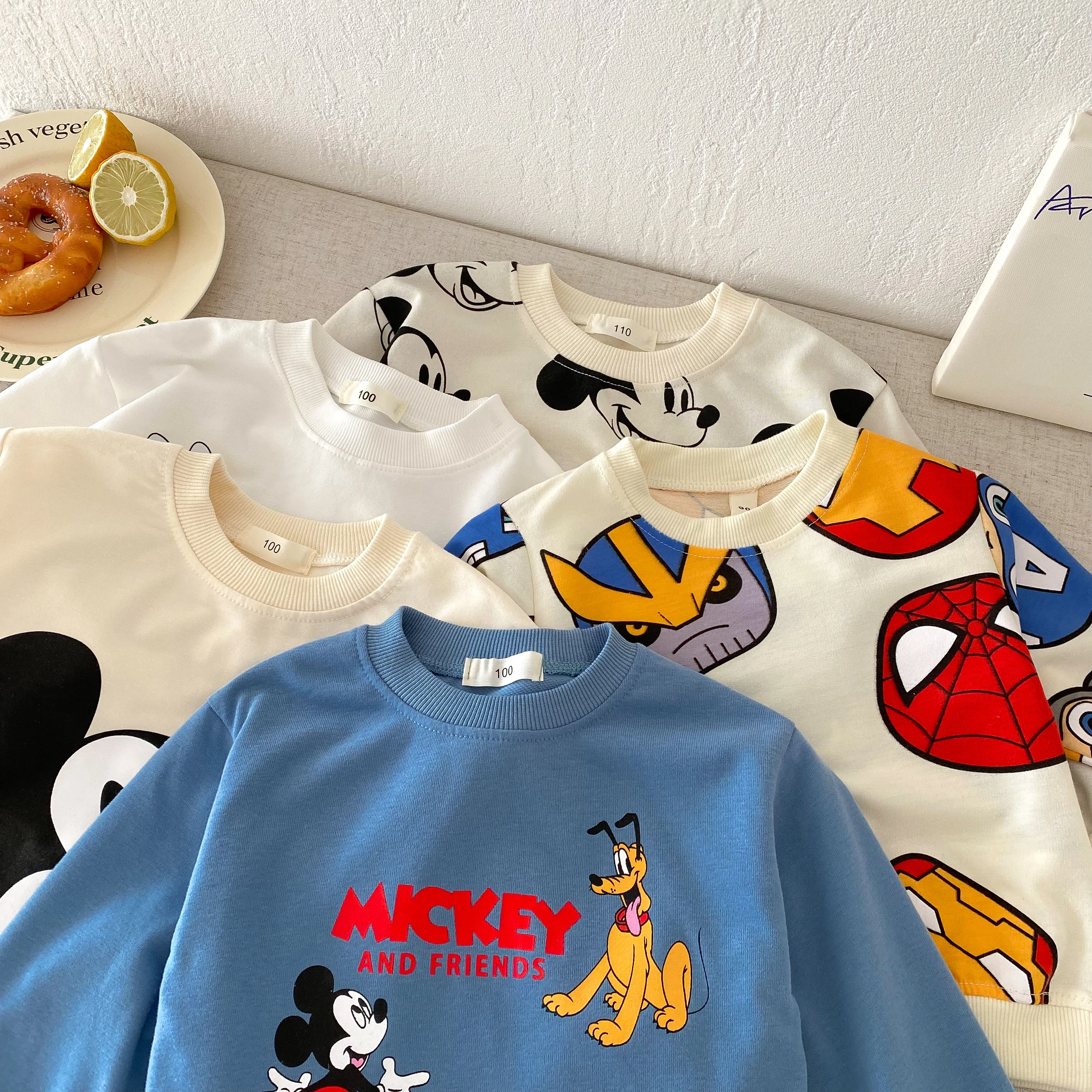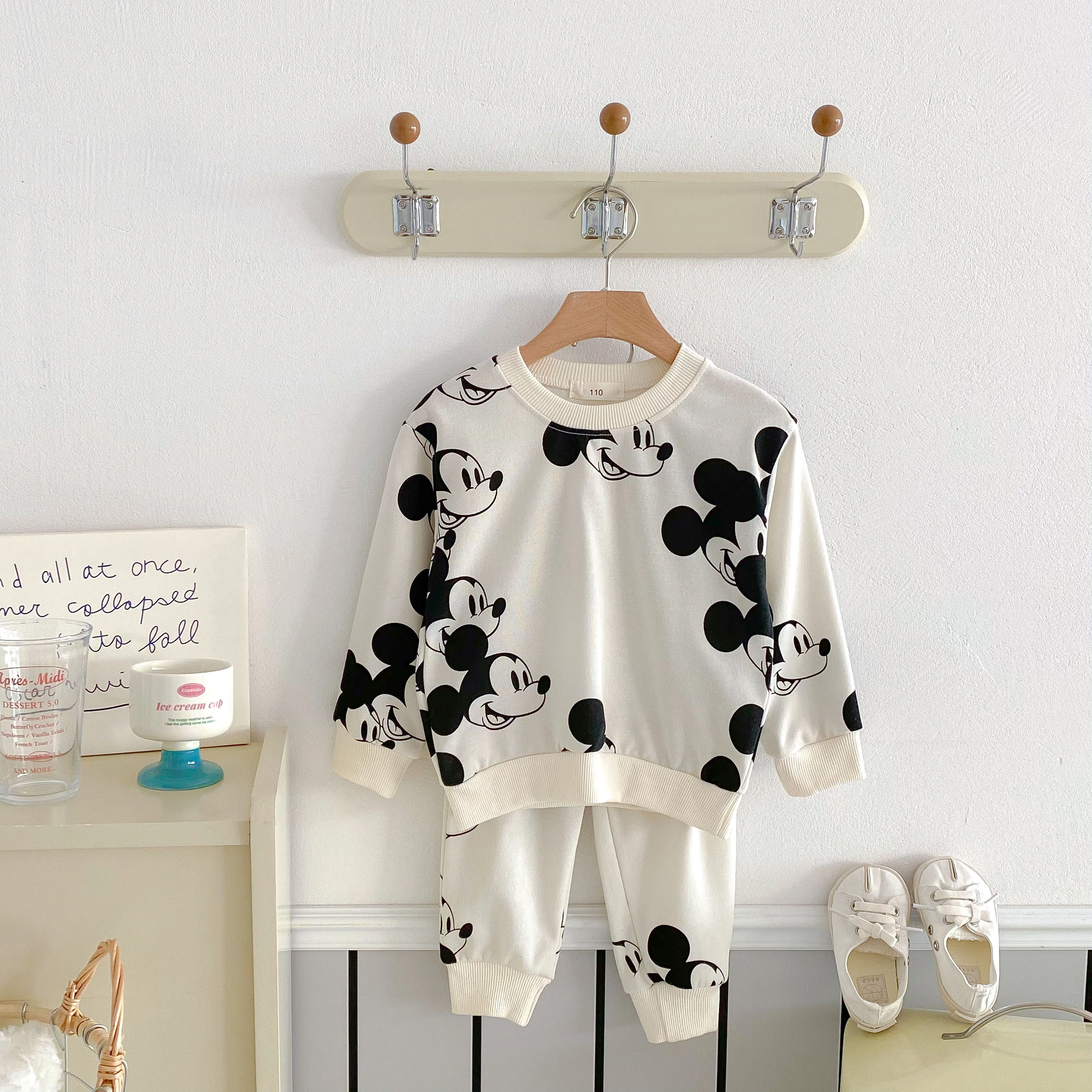 بوتيك ملابس الأطفال ديزني ملابس رياضية بأكمام طويلة طباعة الكرتون فضفاضة بلوزات غير رسمية مجموعة ملابس أطفال الخريف