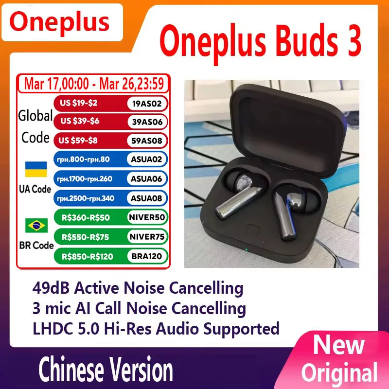إيقاف إلغاء الضوضاء: 10 ساعات (شحنة واحدة)، 44 ساعة (مع علبة الشحن)