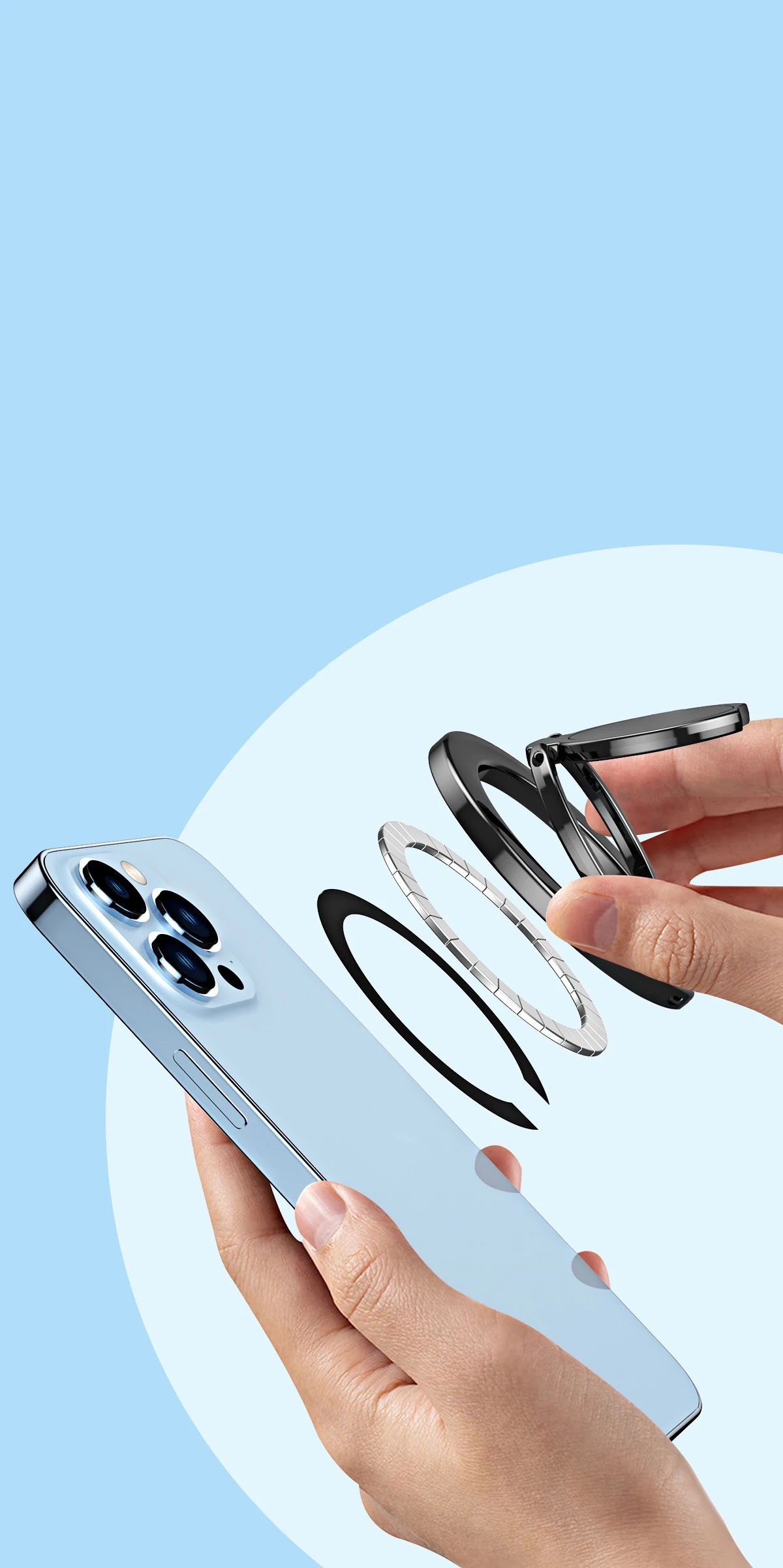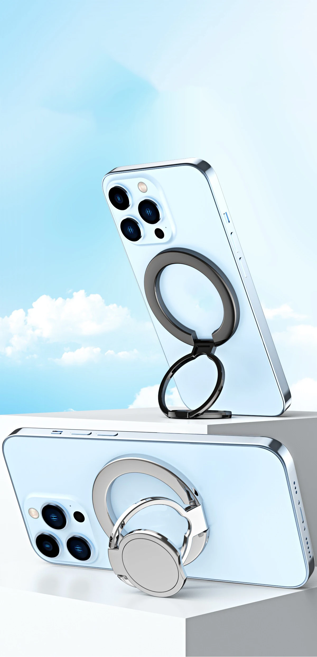 Magsafe معدن 3 أقسام القرص الأوسط دعامة حلقة شفط مغناطيسية 360 ° شحن دوار عالمي قابل للطي رفيع للغاية ج