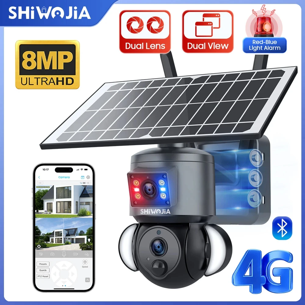 SHIWOJIA 4K 8MP Dual Lens Outdoor Solar Camera