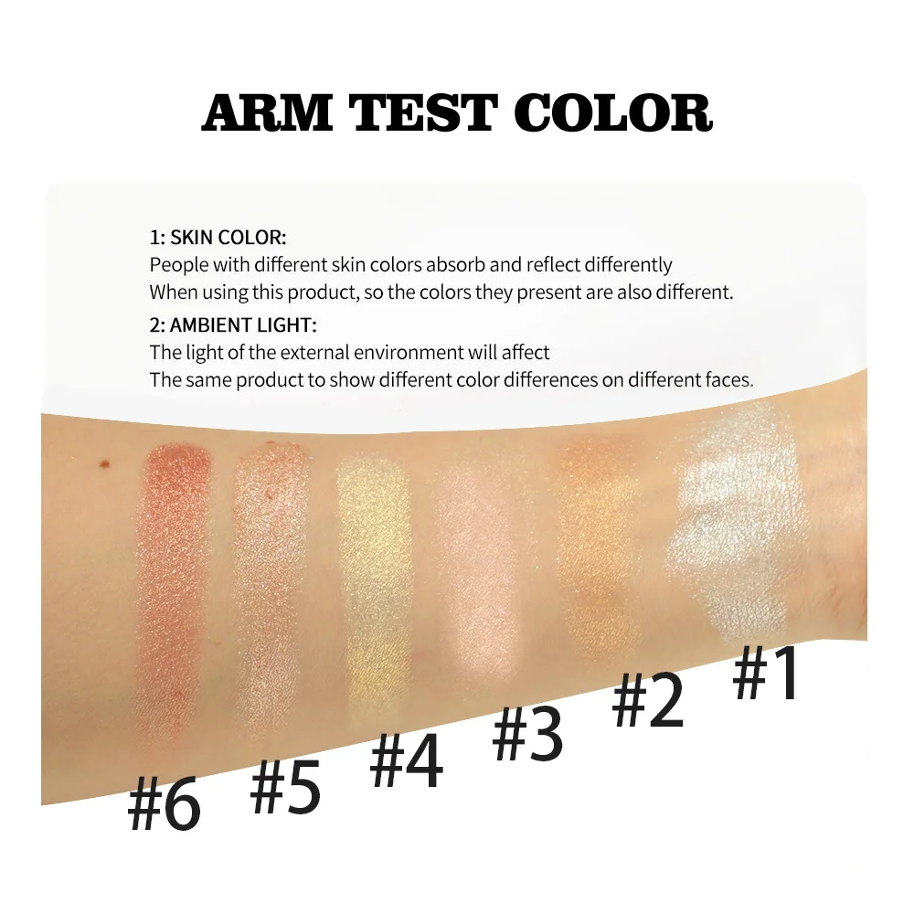 مدمج لتسليط الضوء على الوجه بـ 6 ألوان مع تركيبة طبيعية مقاومة للماء والعرق