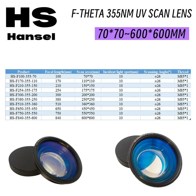 اسم المنتج: عدسة مسح بالليزر بالأشعة فوق البنفسجية HS F-Theta 355nm