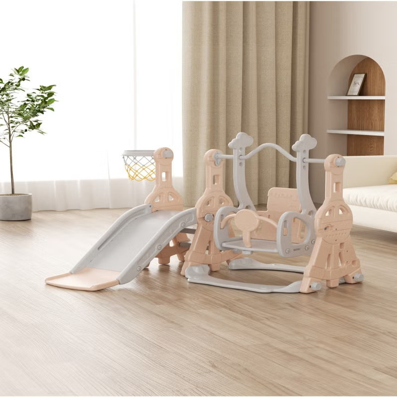 زحليقة مع مرجيحة للأطفال مع كرة سلة 140*122*98 سم وردي