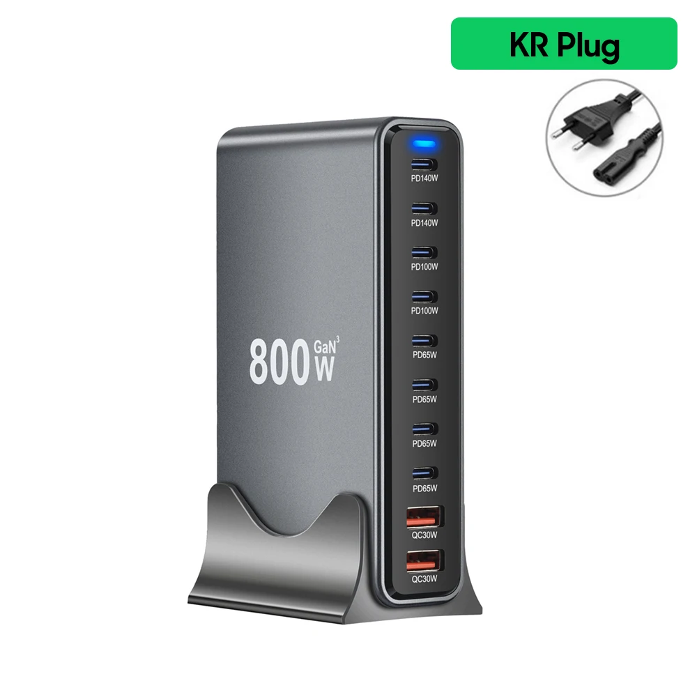 800 واط GaN شاحن USB C سطح المكتب السريع 10 منافذ USB نوع C PD3.1 شاحن شحن سريع آيفون 16 15 14 سامسونج S24 شاومي محمول