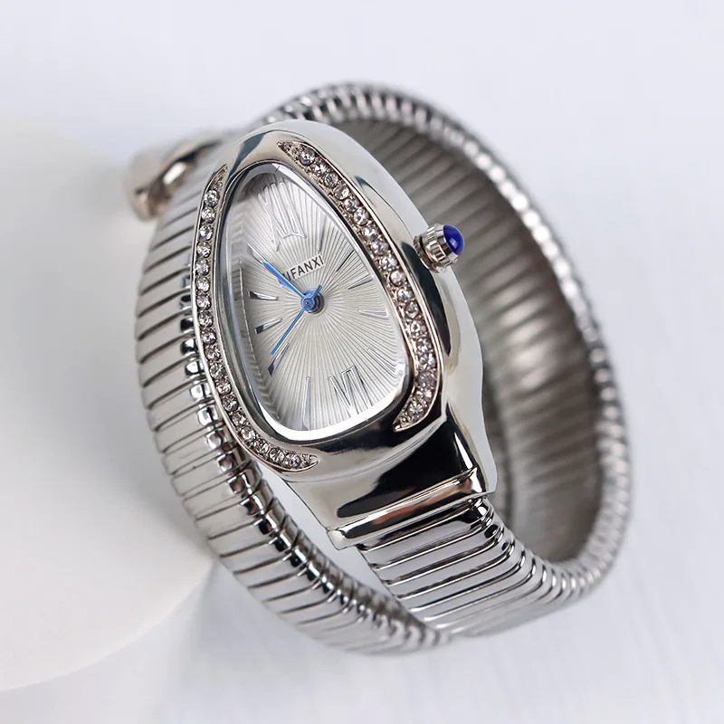 التصميم الإبداعي 2024 الساعات النسائية الساخنة قمة الموضة مثلج الماس ساعات الكوارتز الفاخرة الأفعى ساعة السيدات AAA ساعة اليد Reloj