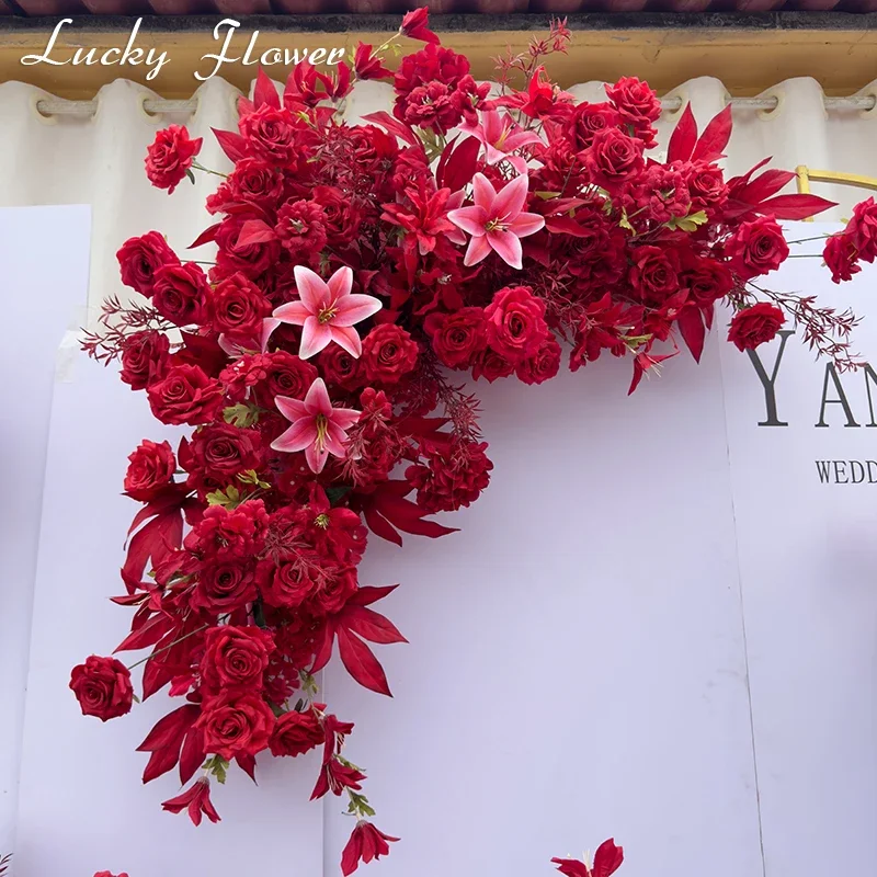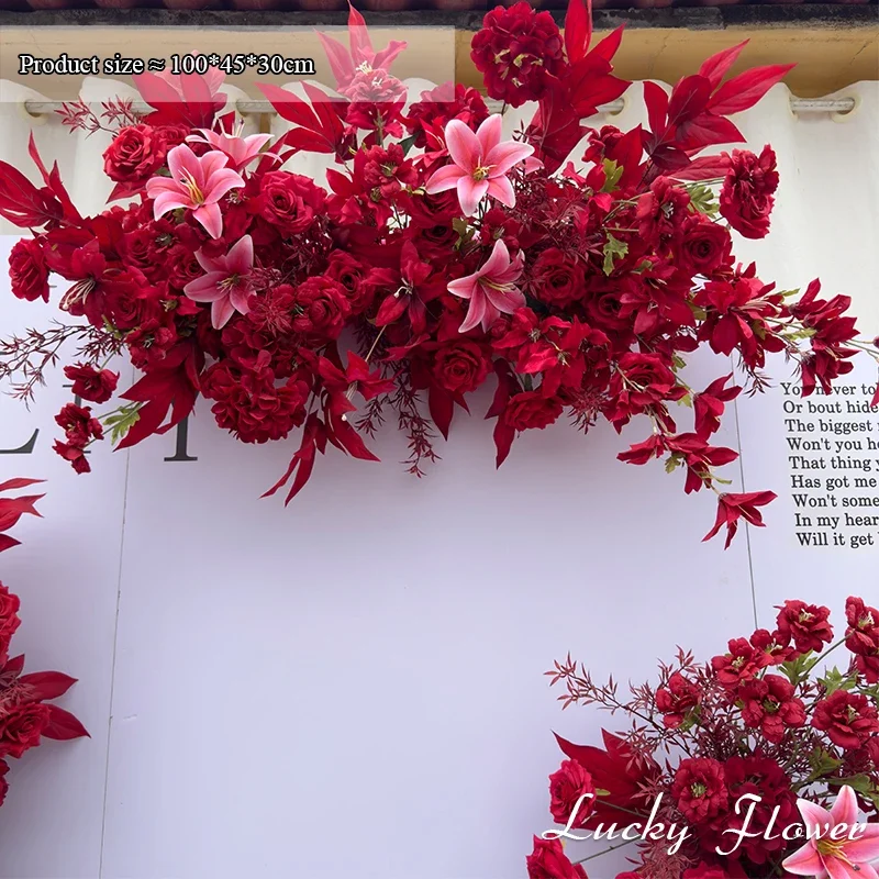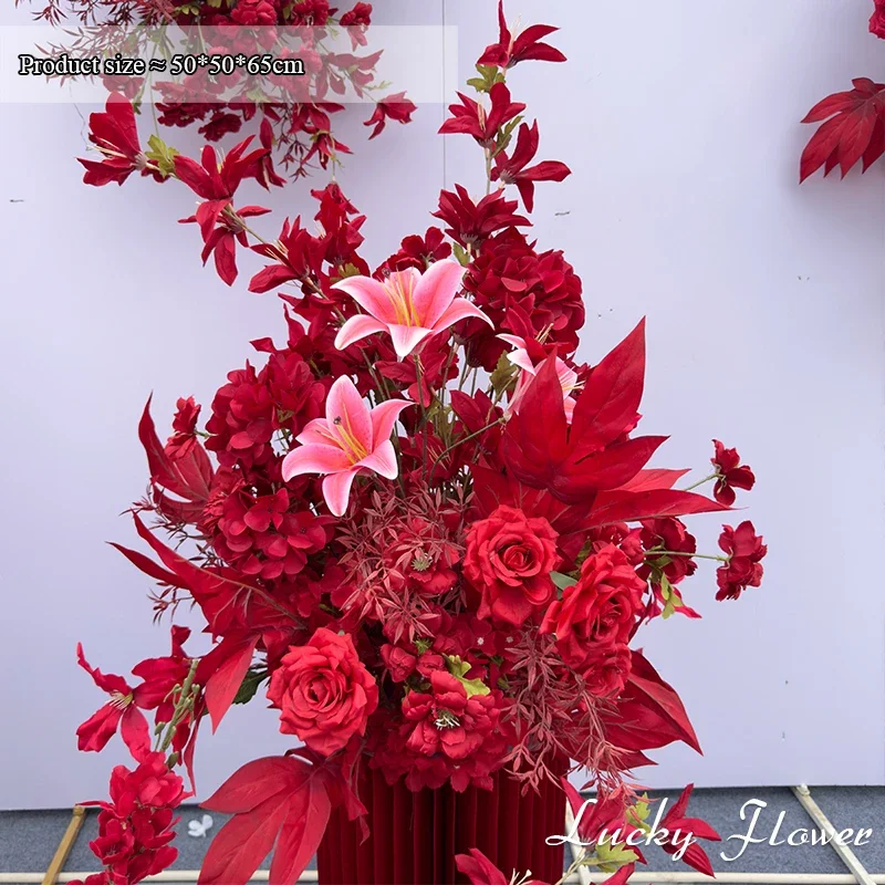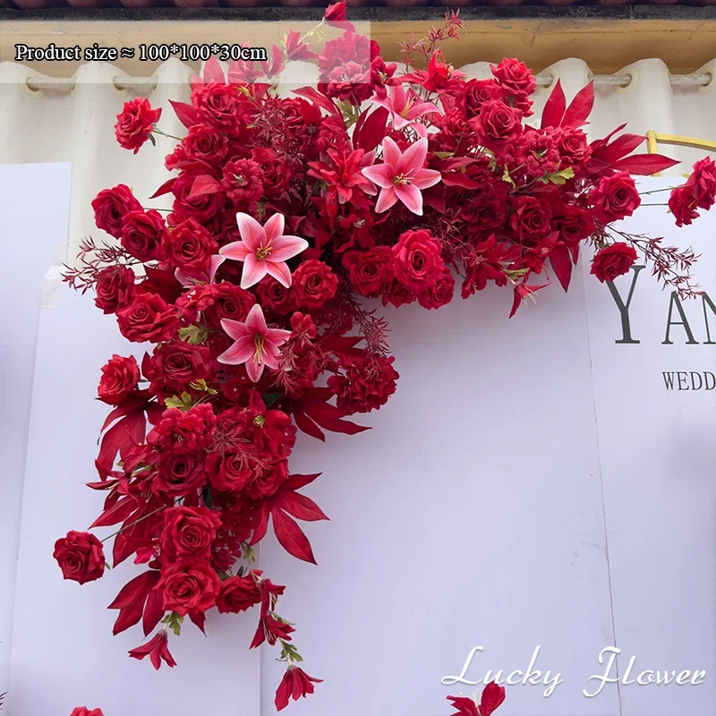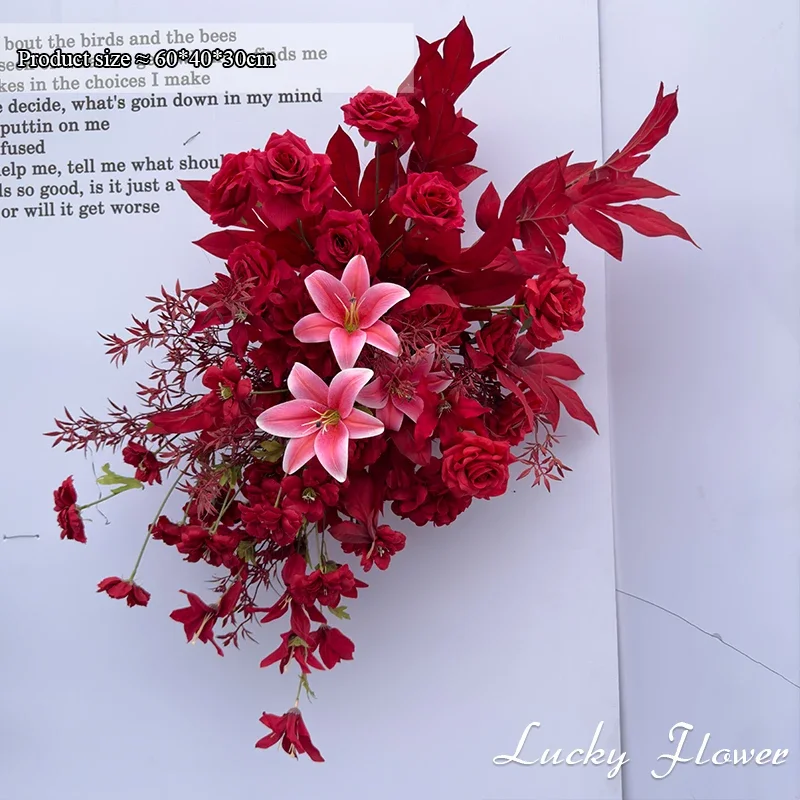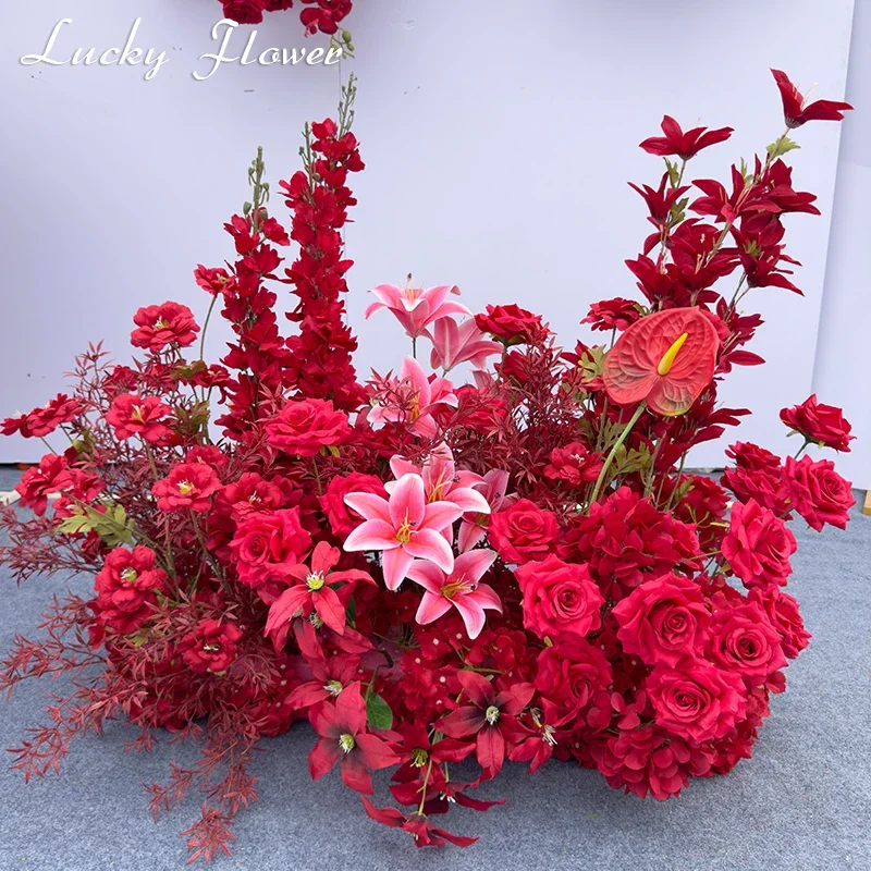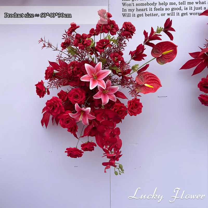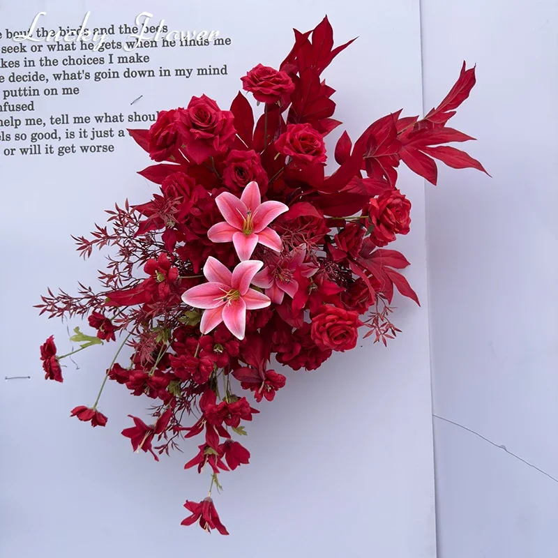 الأحمر في الهواء الطلق الزفاف الديكور الاصطناعي روز زهور الزنبق شنقا زهرة صف الطريق الرصاص زهرة الكرة الطابق زهرة صف