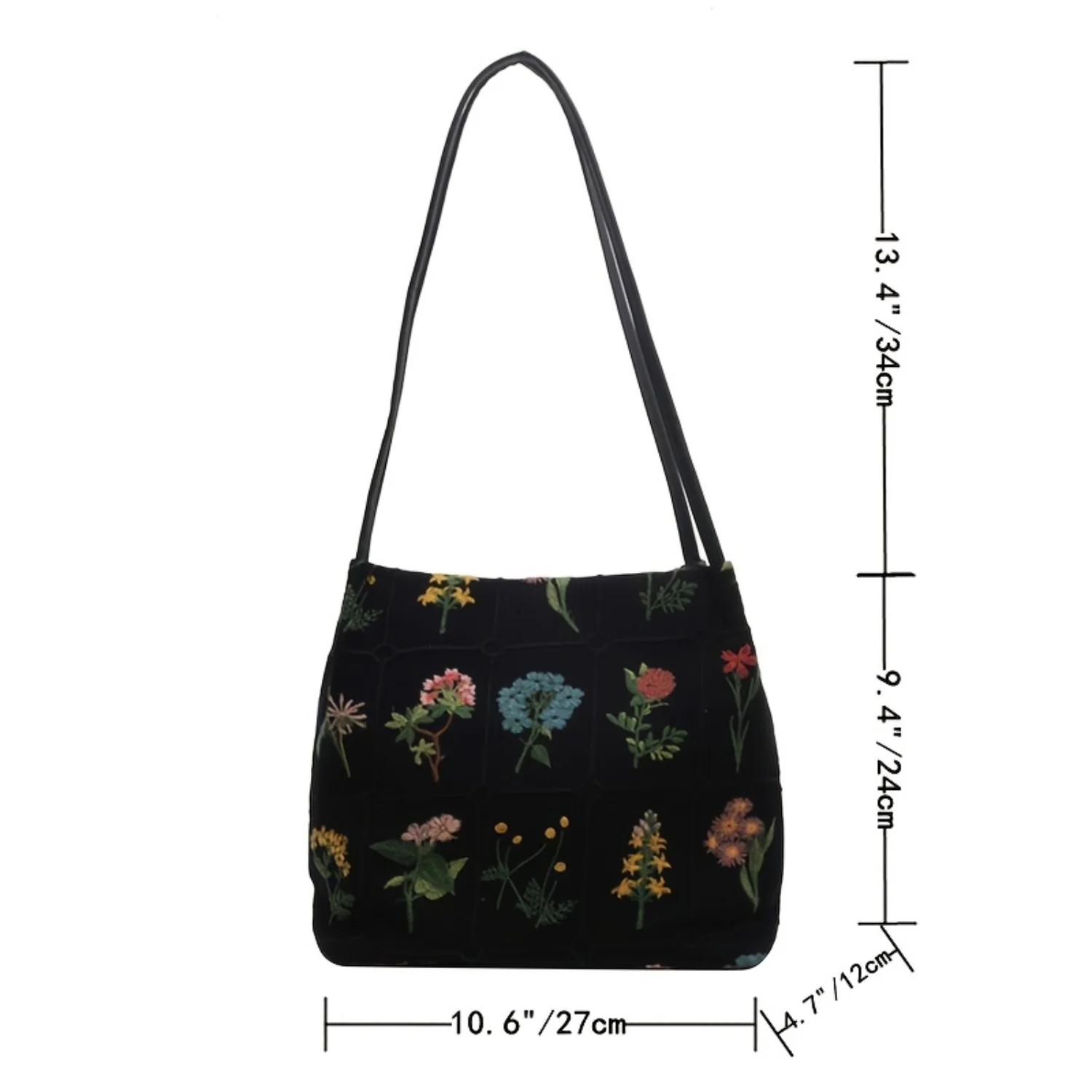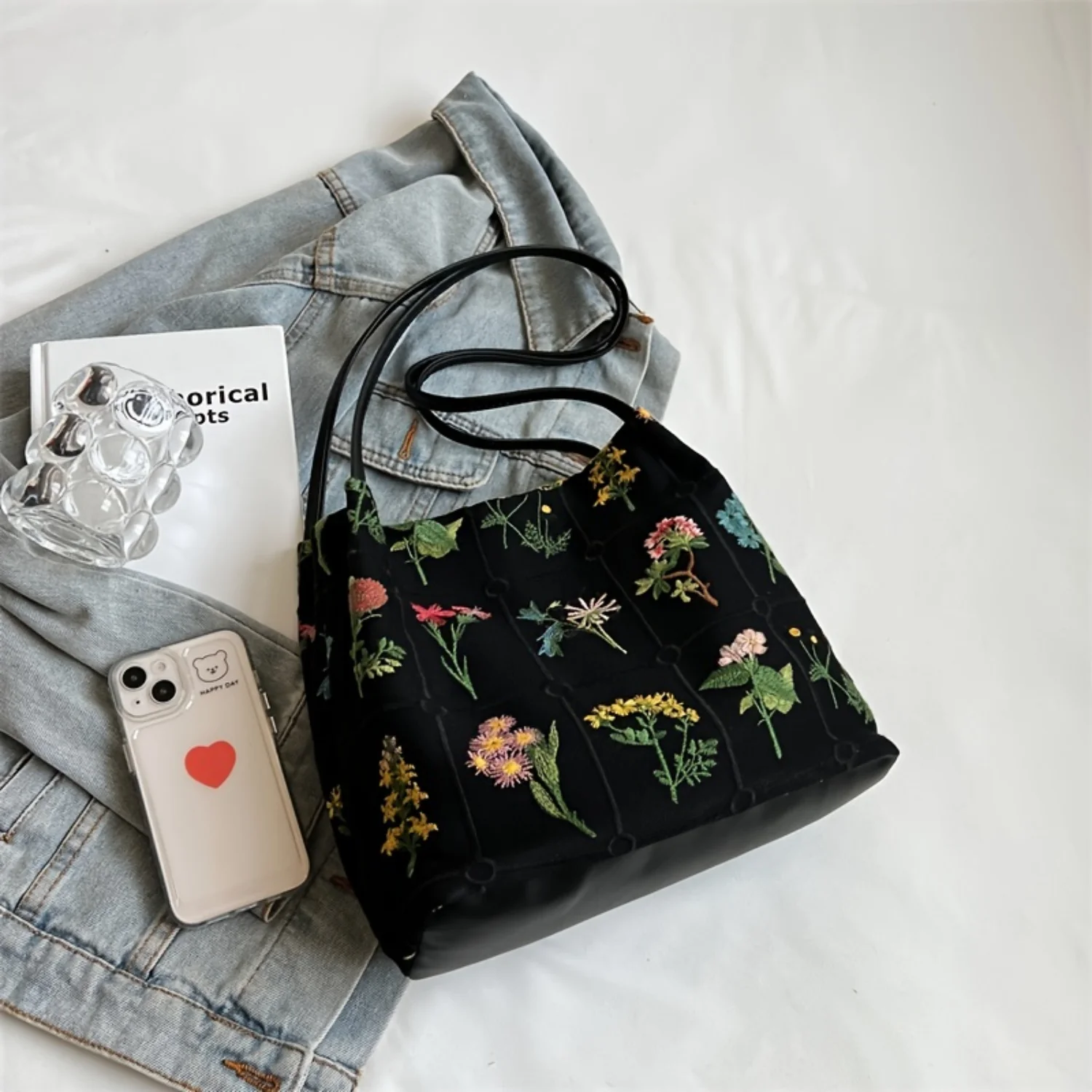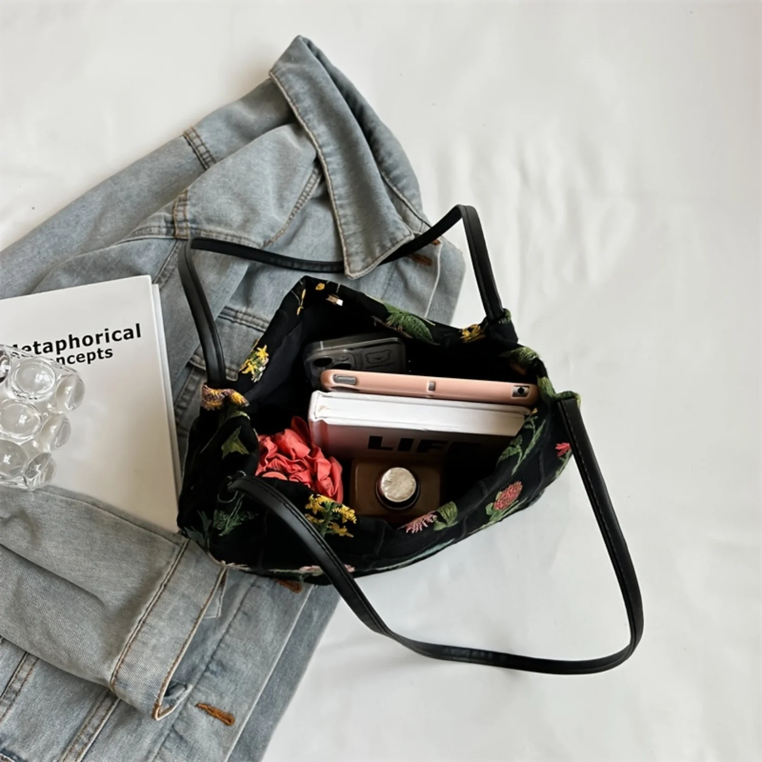 حقيبة هوبو كلاسيكية مطرزة بالزهور - حقيبة كتف خرافية أنيقة - حقيبة يد كاجوال ومحفظة حمل للنساء
