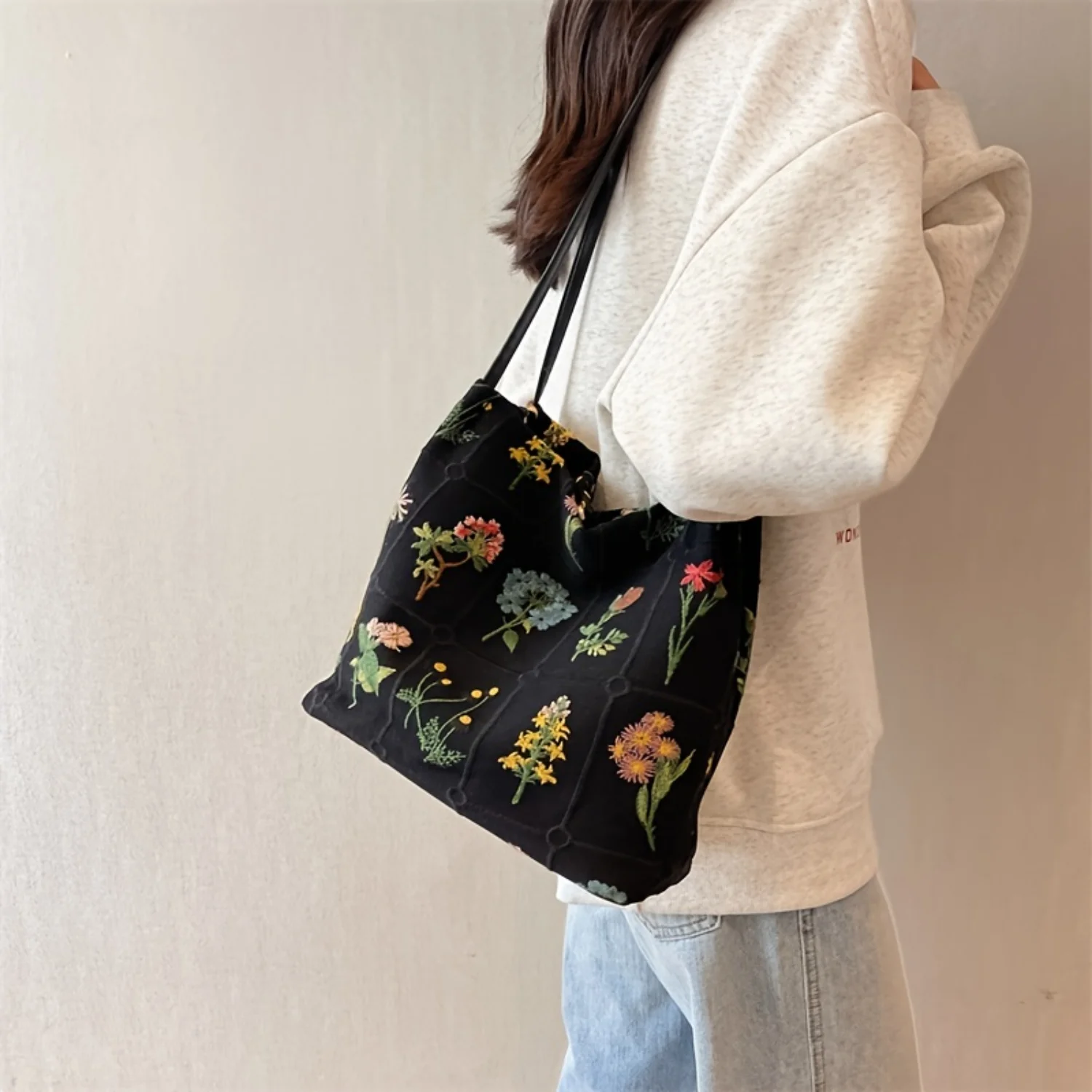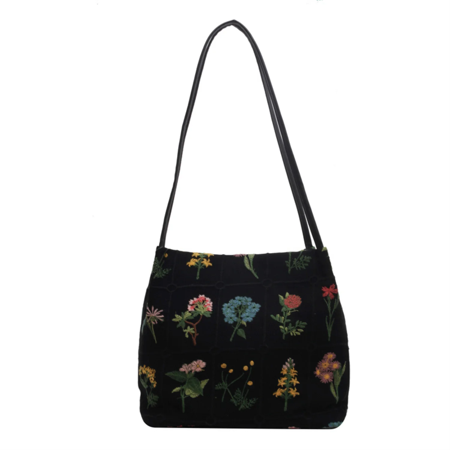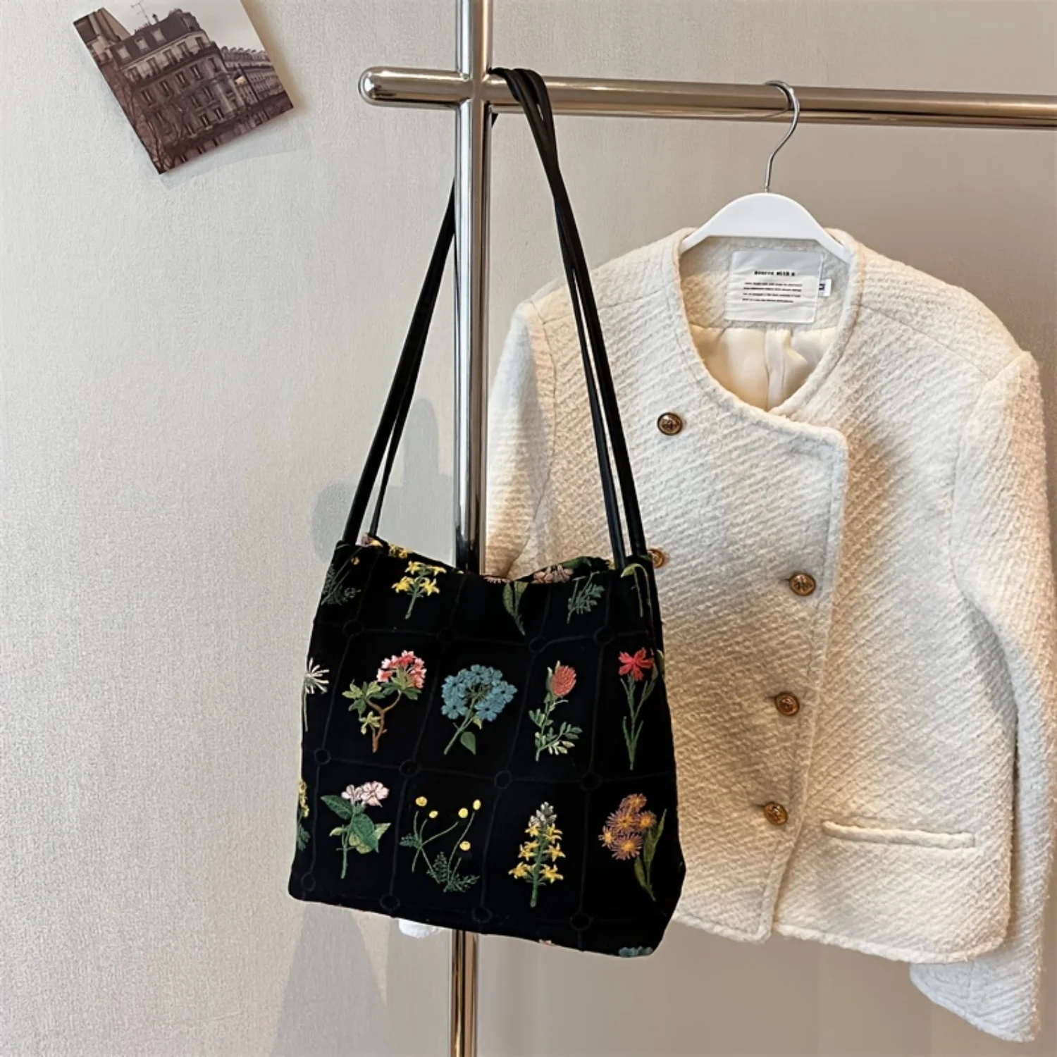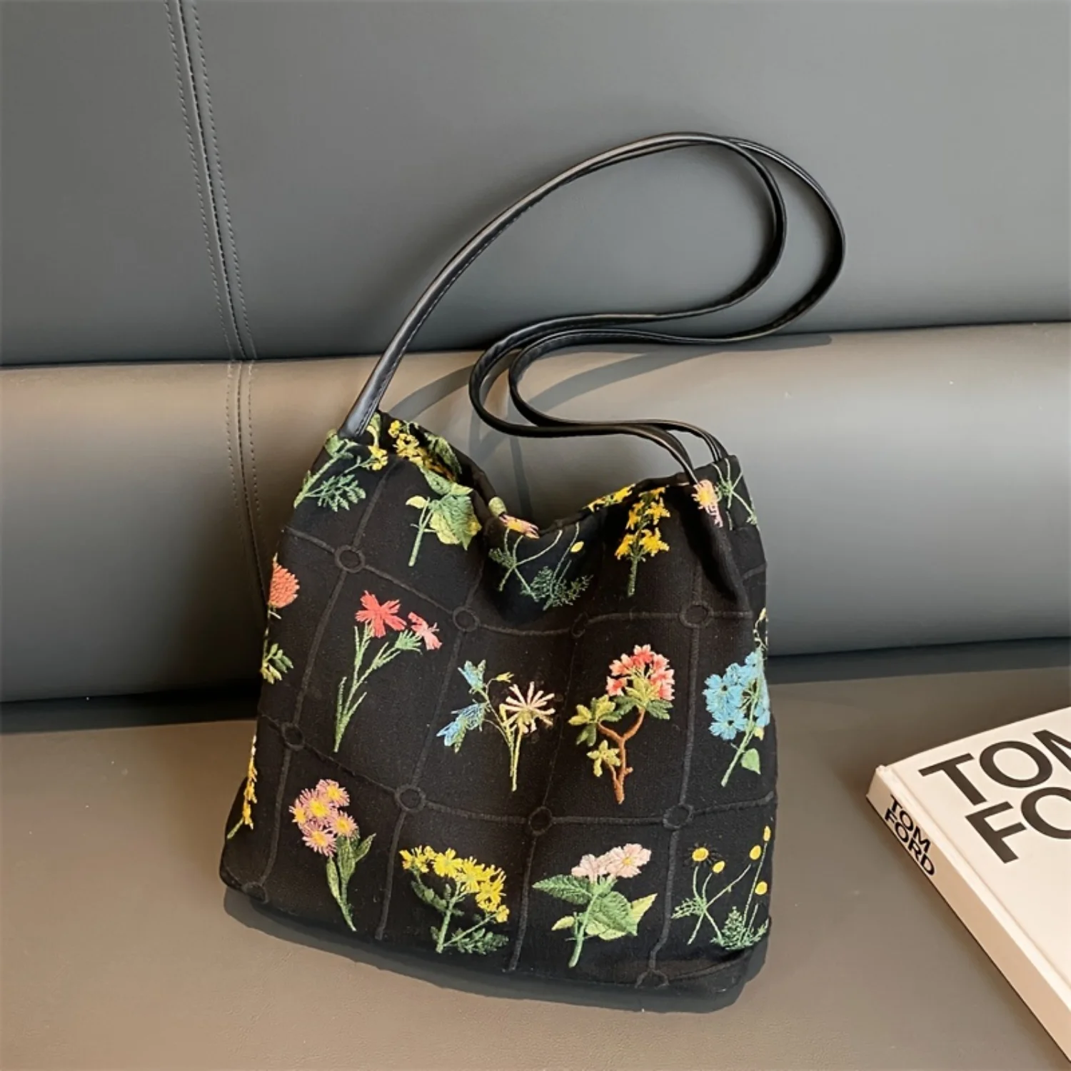 حقيبة هوبو كلاسيكية مطرزة بالزهور - حقيبة كتف خرافية أنيقة - حقيبة يد كاجوال ومحفظة حمل للنساء