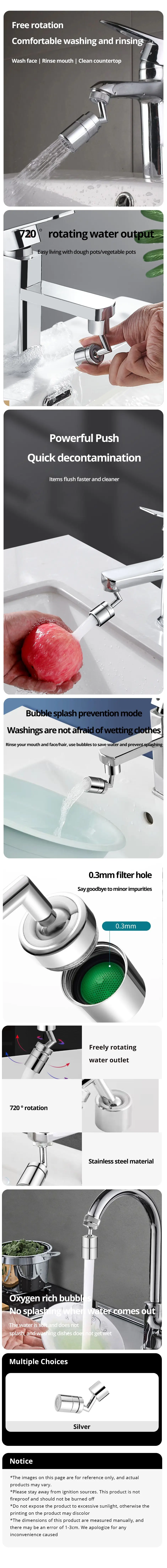 • دوّارة 720 درجة :يمكن لموسع الصنبور تدوير 720 درجة ، مما يجعل من السهل الوصول إلى جميع زوايا الحوض.