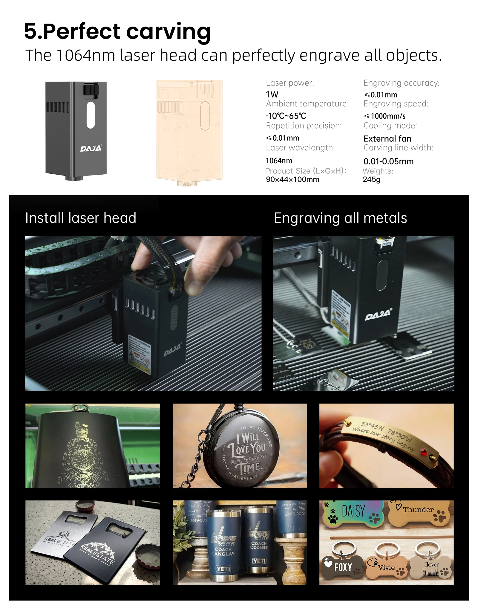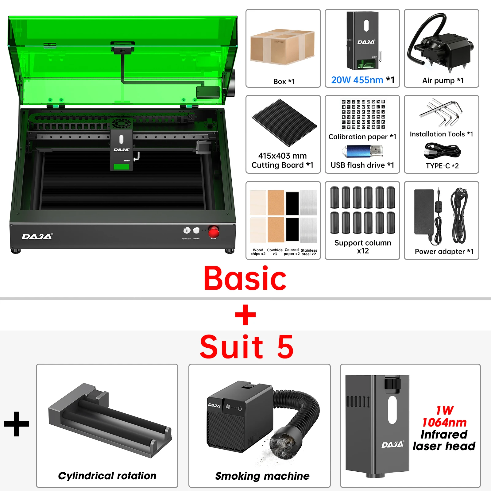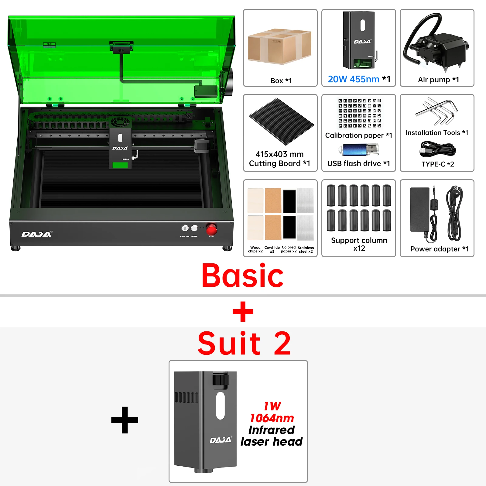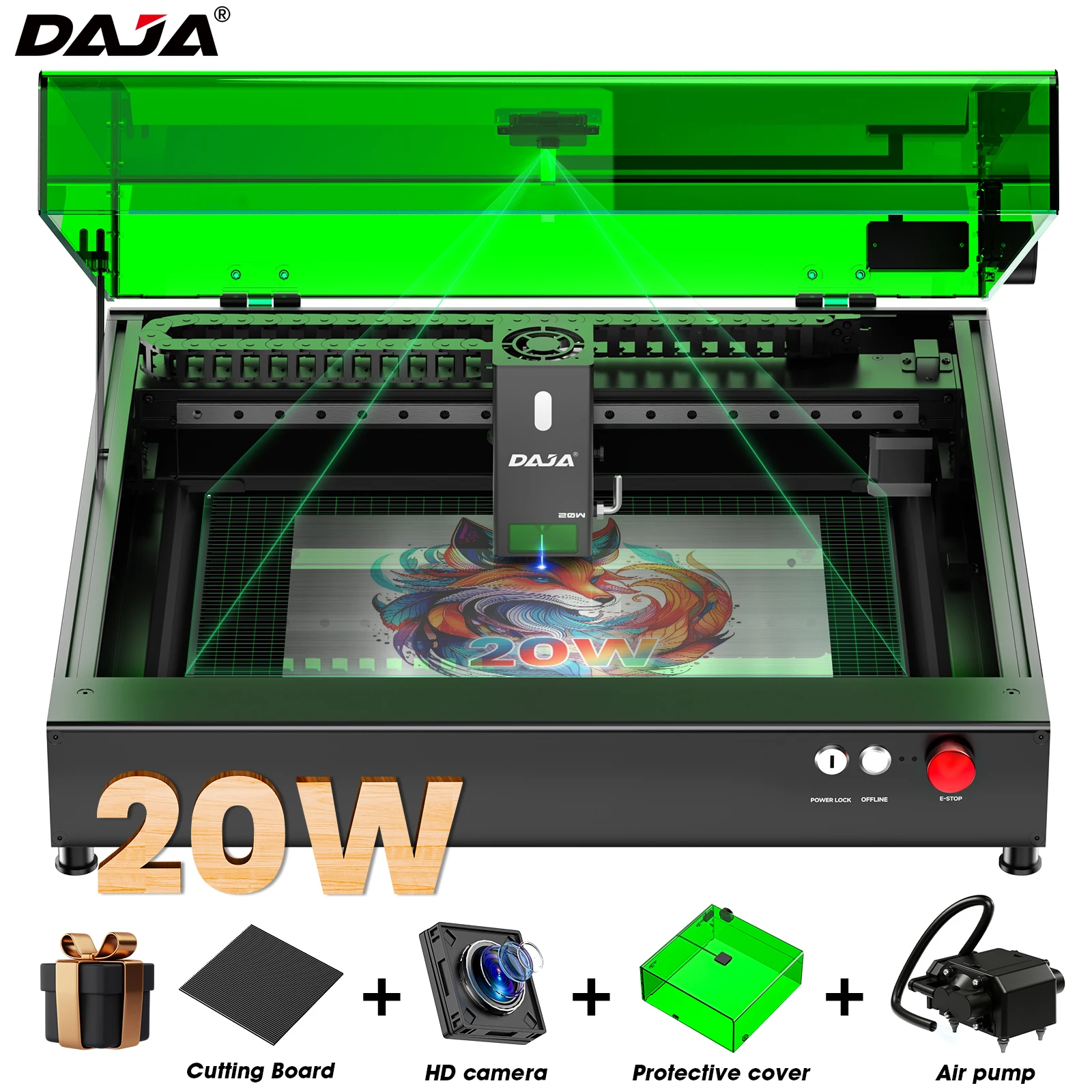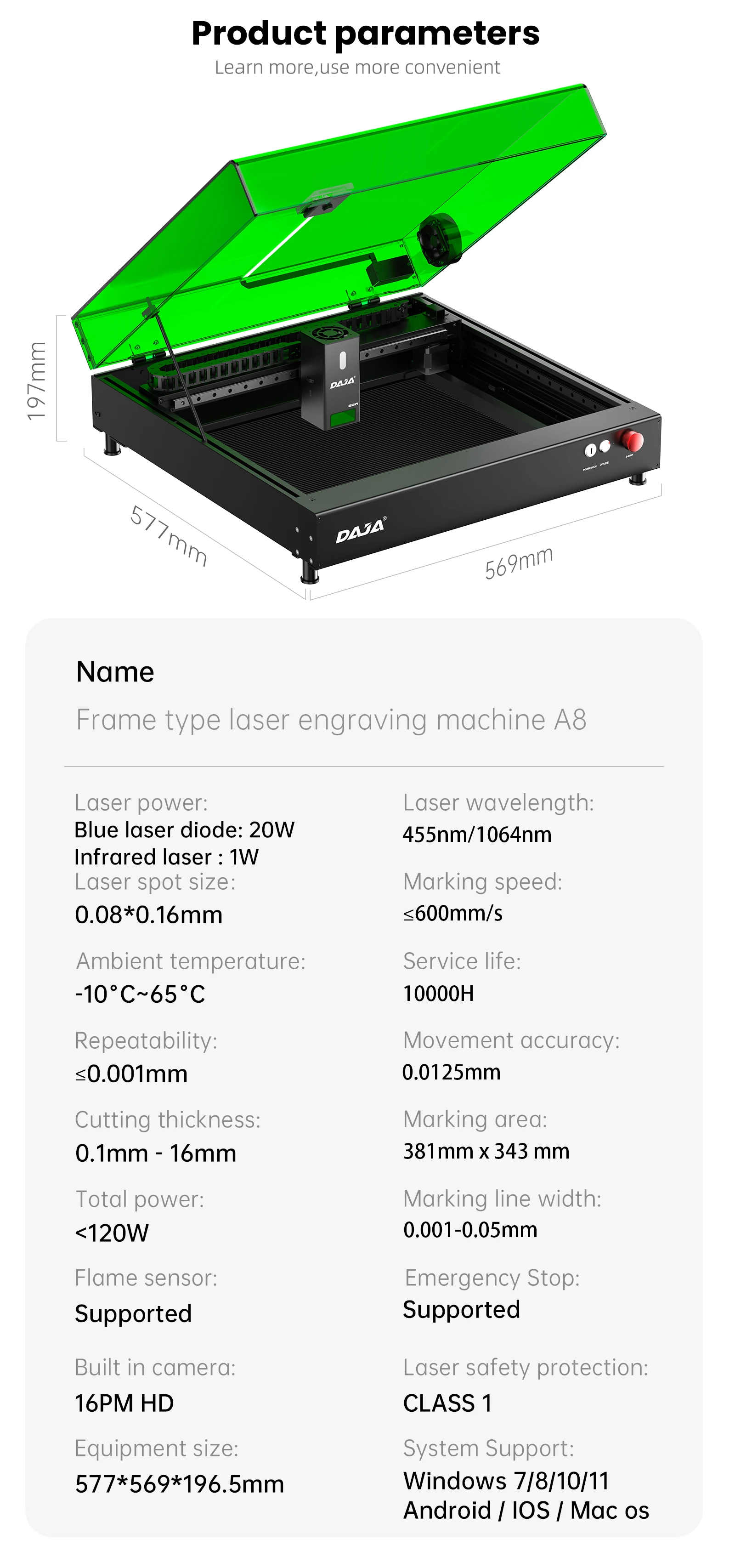 DAJA A8 آلة القطع بالليزر عالية الدقة كفاءة الأعمال بالليزر آلة الحفر للمعادن الخشب الاكريليك والزجاج والجلود