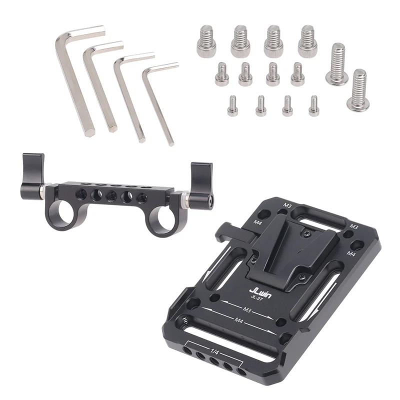 تسليم 24 ساعة Jlwin V-نوع واجهة البطارية قرصة لوحة 15 مللي متر دليل السكك الحديدية مشبك أنابيب قاعدة ثابتة التصوير سهلة التركيب مجموعة 7
