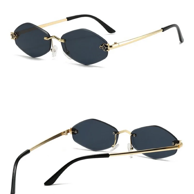 نظارات شمسية بدون إطار بحافة مقطوعة على شكل ألماس نظارات شمسية مخصصة على شكل الفهد مقاومة للأشعة فوق البنفسجية بإطار صغير UV400 نظارات شمسية جديدة