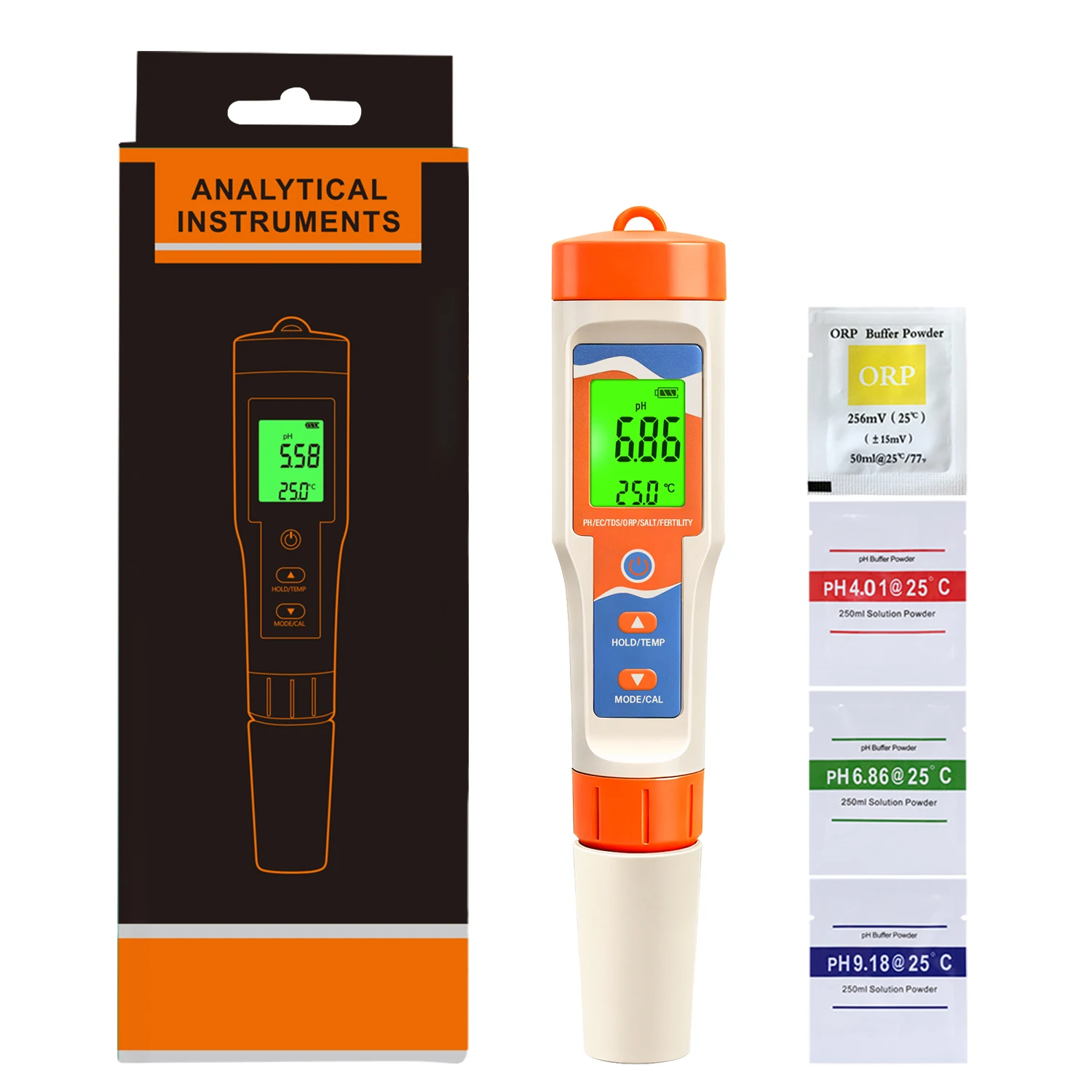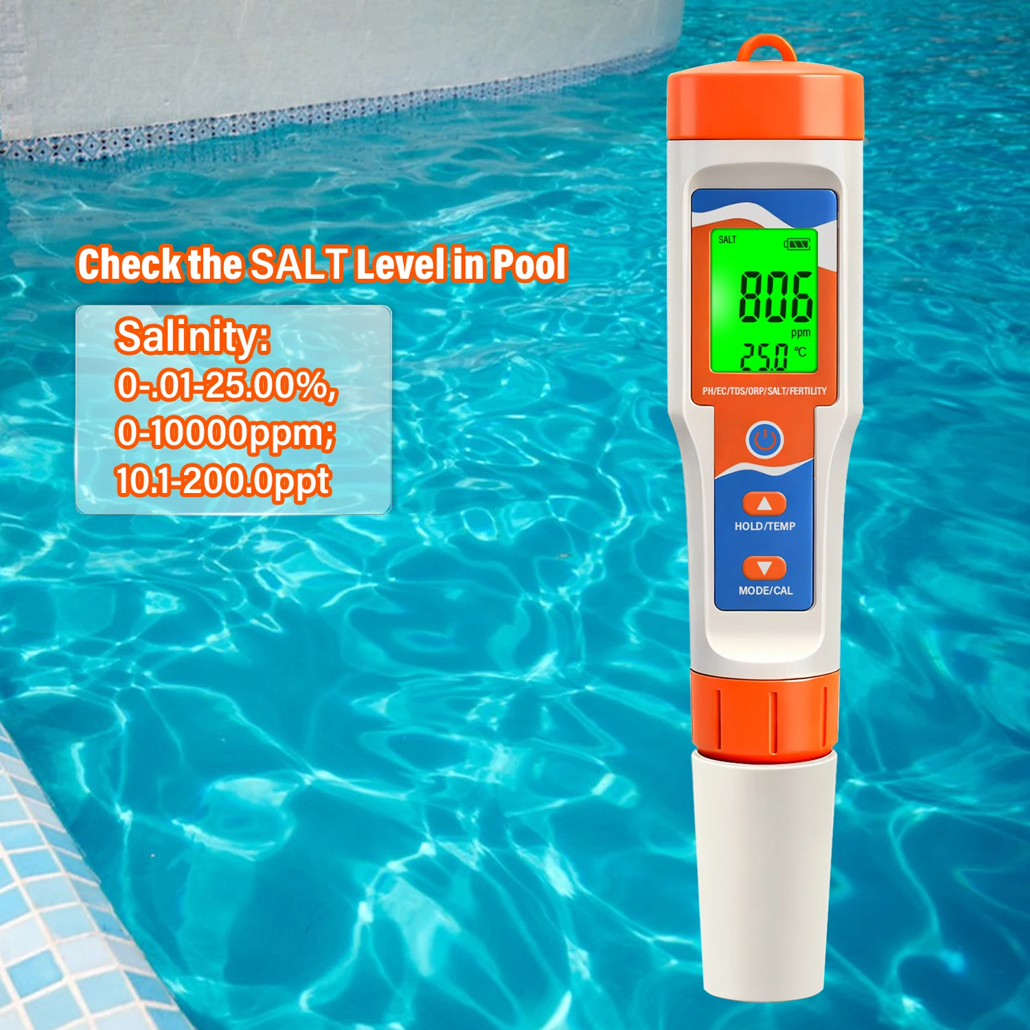 7 في 1 رقمي PH EC TDS ORP سمك الملوحة درجة حرارة نوعية المياه تستر القلم مع ATC لحوض السمك الزراعة المائية سبا