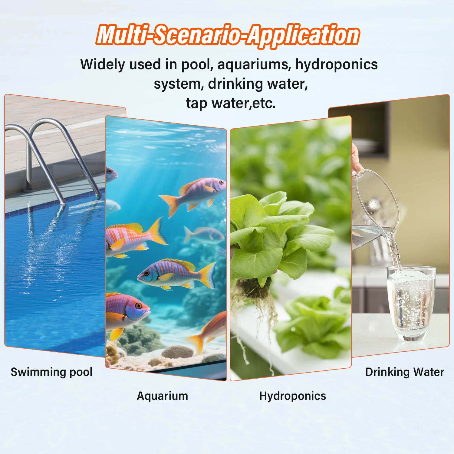 5.تطبيق واسع – مثالي لحوض السمك والزراعة المائية ومياه الشرب وحمامات السباحة والزراعة وتجهيز الأغذية والاختبارات المعملية.