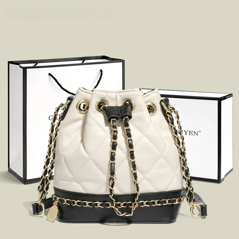 CahinoKiyen حقيبة دلو صغيرة أصلية بحزام على شكل سلسلة حقيبة كروس للربيع والصيف نمط جديد عالي الجودة حقيبة يد نسائية عصرية