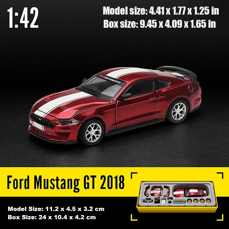 سيارة مجسمة من سبيكة CCA ، مركبة سباق رياضية مع صندوق ، أجزاء قابلة للتغير ، هدية للمراهقات ، فورد موستانج GT