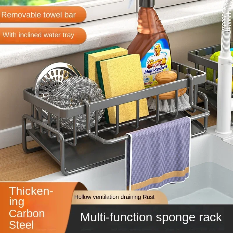 جودة عالية: منظم إسفنجة المطبخ مصنوع من الفولاذ المقاوم للصدأ، ولن يصدأ ويمكن استخدامه لفترة طويلة.إسفنجة مطبخ وحامل...