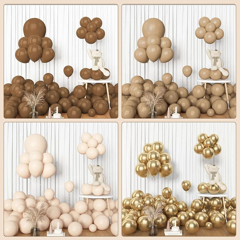 مجموعة قوس بالون بني مكونة من 153 قطعة، مقاسات مختلفة 18 12 10 5 بوصة بني عاري من اللاتكس المعدني بالون ذهبي مناسب للجنسين الدب استحمام الطفل لوازم تزيين حفلات أعياد الميلاد
