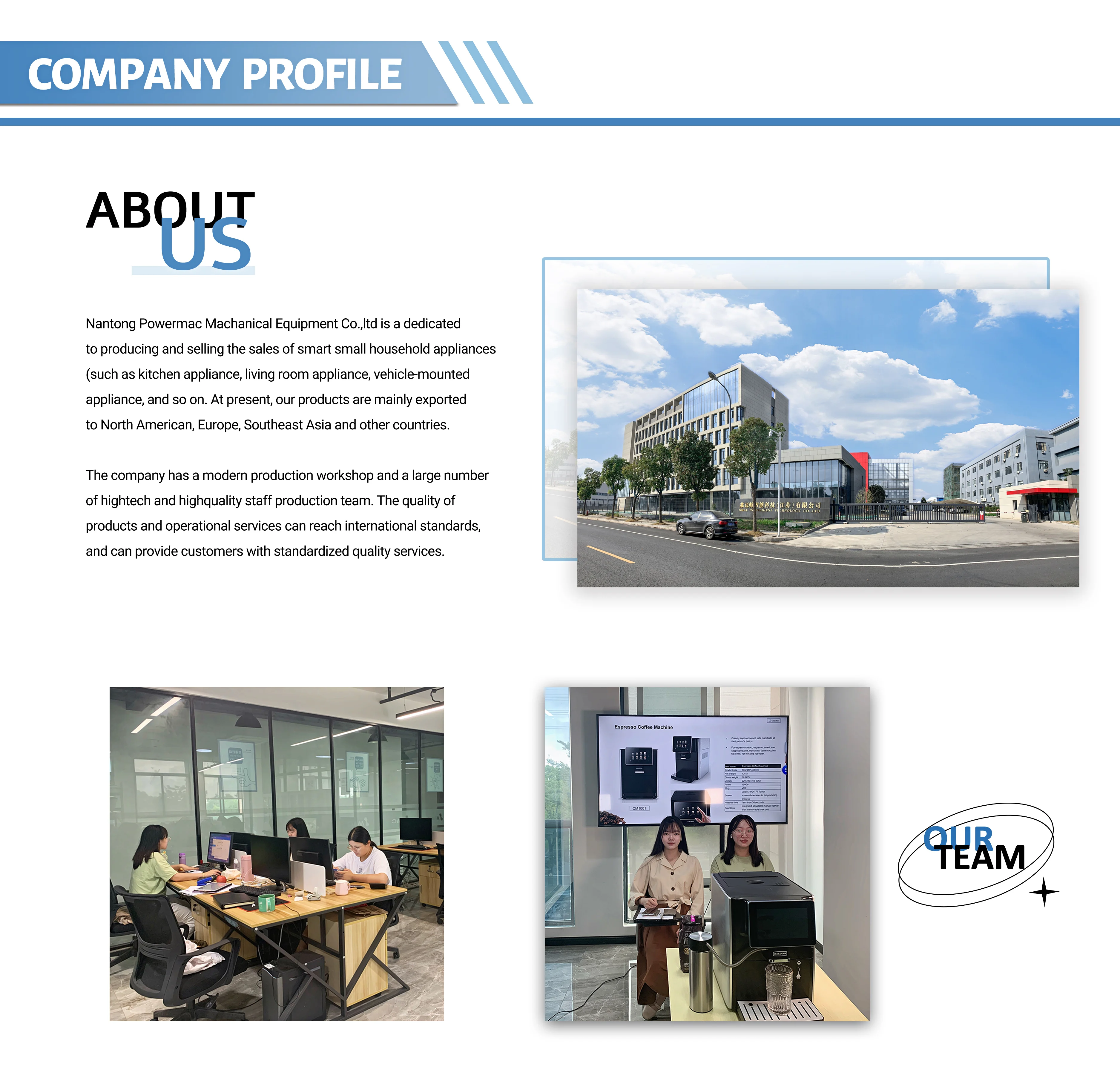 نحن شركة تصنيع أجهزة المنزل الذكي ODM/OBM.أعمالها الرئيسية تأتي من تصنيع المعدات الأصلية والتصدير.المنتجات الرئيسية هي آلات القهوة وآلات الخبز والخلاطات.لدينا فريق بحث وتطوير إنتاج ناضج وفريق تجاري خارجي متحمس.نحن نرحب بكم ترحيبا حارا.