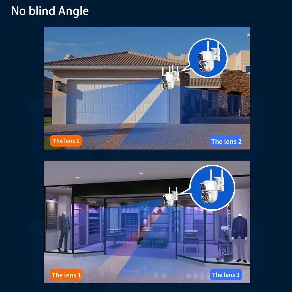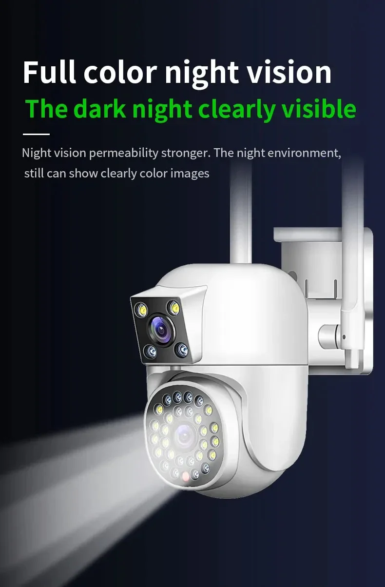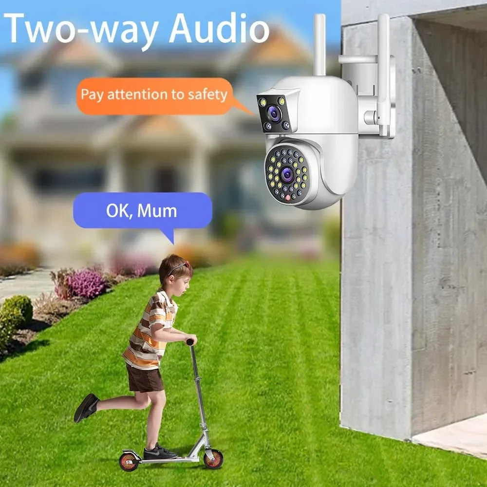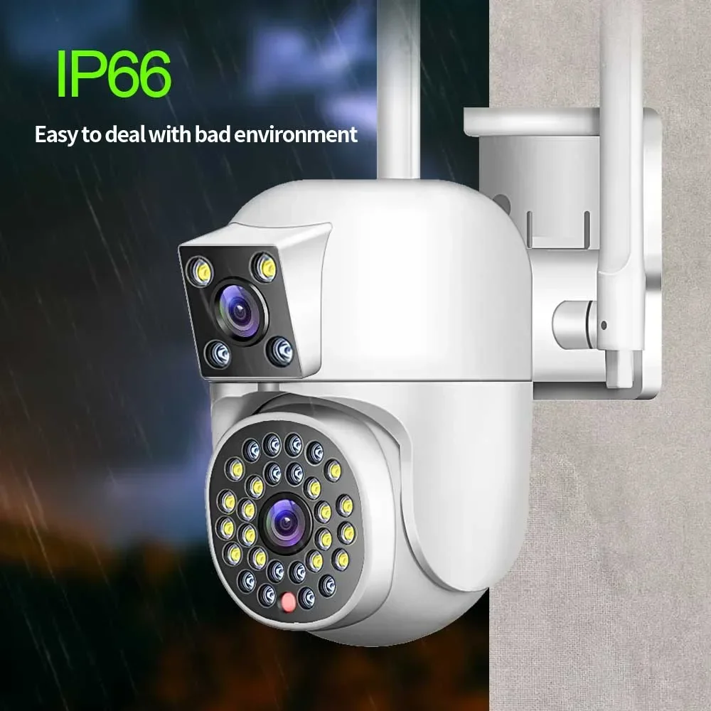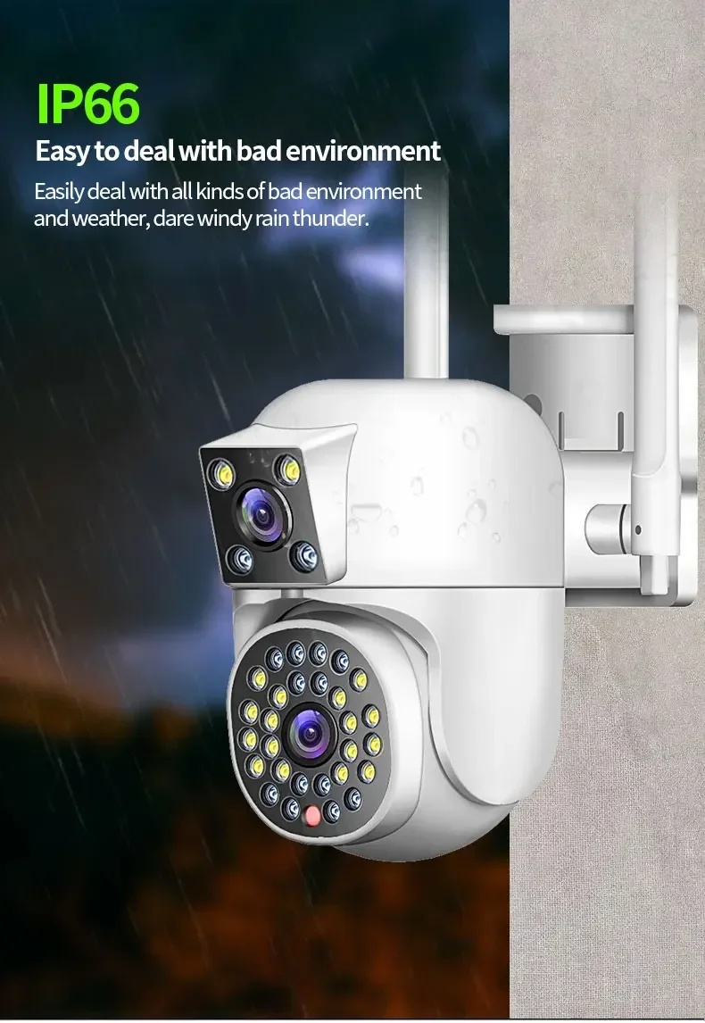 كاميرا أمان بعدسات مزدوجة خارجية ، كاميرات مراقبة صوتية ثنائية الاتجاه ، مقاومة للماء ، PTZ ، شاشة مزدوجة ، واي فاي ، IPC360 ، 4K ، 8mp ، 2K ، 4MP