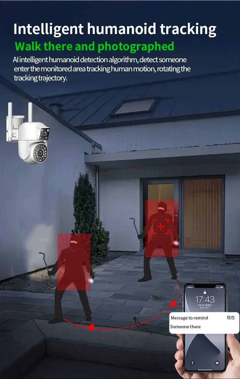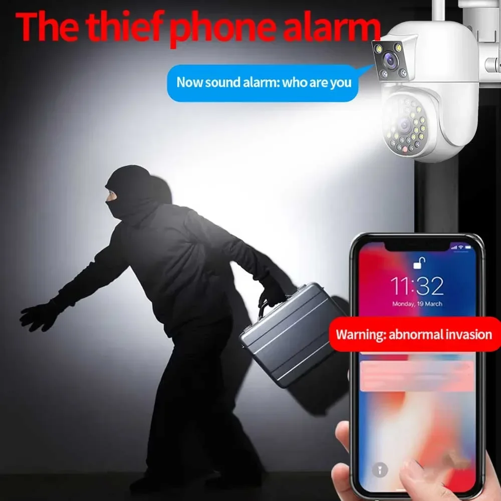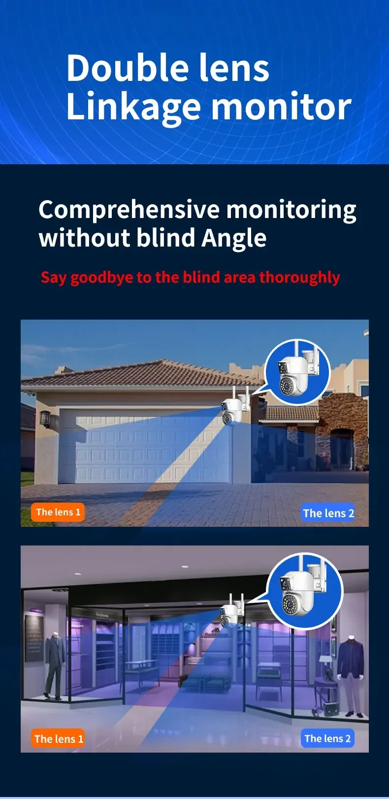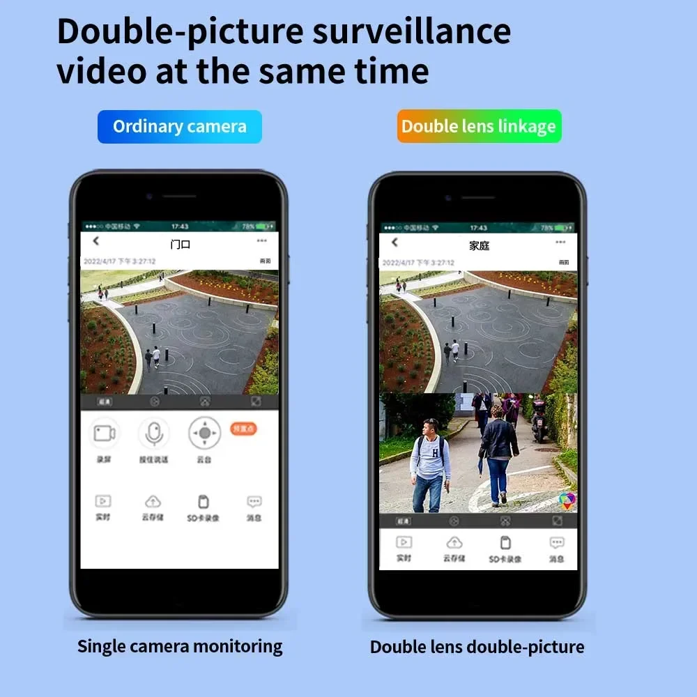 كاميرا أمان بعدسات مزدوجة خارجية ، كاميرات مراقبة صوتية ثنائية الاتجاه ، مقاومة للماء ، PTZ ، شاشة مزدوجة ، واي فاي ، IPC360 ، 4K ، 8mp ، 2K ، 4MP