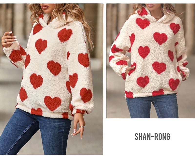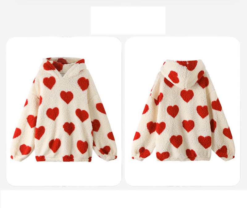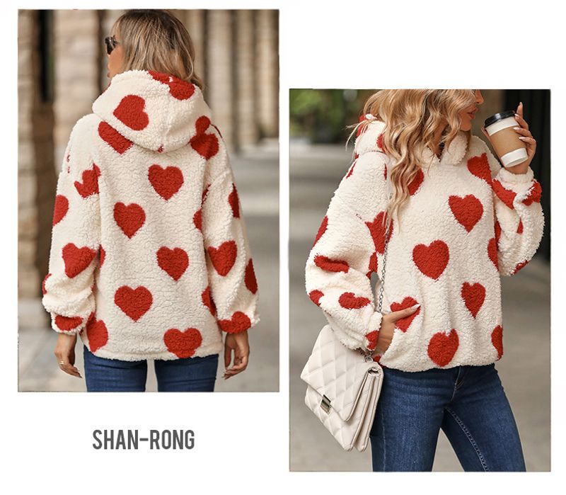 نساء معطف قطعة واحدة بطباعة قلب مبطنة بالفليس مع هودي